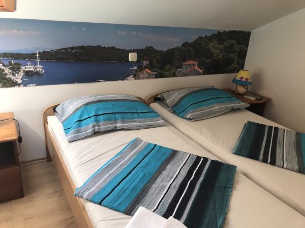 Nowoczesne apartamenty w centrum parku narodowego, 50 metrów od morza i 300m od jeziora. Pensjonat położony jest w cichej części Pomena 150m od hotelu. Oferujemy naszym gościom domowe ekologiczne jedzenie, bardzo smaczne i zdrowe, który jest przygotowywany z naszej żywności. Śniadanie w restauracji mają tradycję ponad 40 lat. Od 1.10.do 1.6. Oferujemy specjalistyczne rozwiązania (wędkarstwo, zbieranie winogron, oliwek, pracujących w dziedzinie domowych produktów, itp.). Goście mogą zjeść śniadanie lub niepełnego wyżywienia w atrakcyjnych cenach.