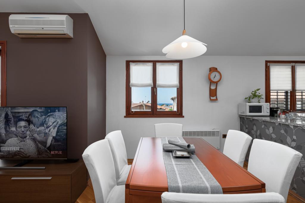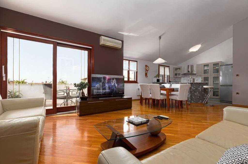 Dom Biba znajduje się w centrum Poreča. To jest 400 m od starego miasta. Najbliższa plaża dla pływaków ze sportem i ciekawymi zajęciami znajduje się 500 metrów od hotelu. Przed domem na podwórku znajduje się parking. Dom składa się z dwóch ładnie urządzonych pokoi oraz przestronnego salonu i balkonu z widokiem na morze. W pobliżu znajduje się piekarnia, supermarket, wypożyczalnia rowerów, kawiarnie i restauracje.