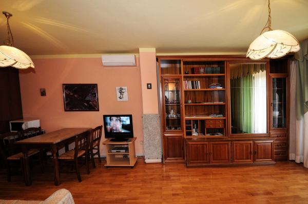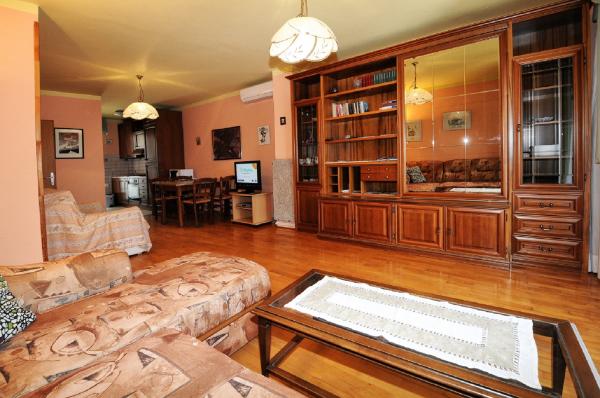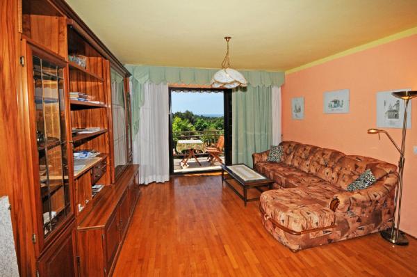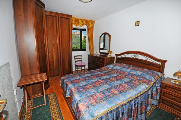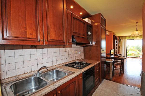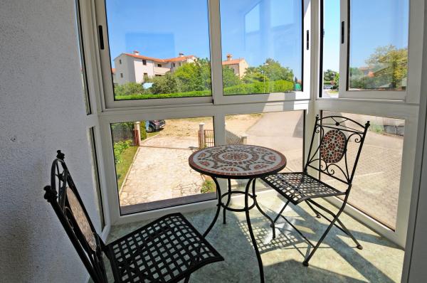 Mieszkanie znajduje się na pierwszym piętrze budynku w otoczeniu zieleni, w cichej elitarnej części miasta Poreč, nad centrum sportowego hotelu Diamant. Komfortowo urządzony apartament składa się z przestronnego salonu, większych i mniejszych sypialni, taras, balkon, zamkniętej kuchni, łazienki z prysznicem i toaletą oraz przedpokoju. Z salonu, taras i mniejsza sypialnia posiada piękny widok na morze. Reszta apartamencie z widokiem własnego pięknie zagospodarowany ogród z drzewami owocowymi i kwiatami w ogrodzie jest własne ruchome ogrodzenie chroniony parking dla samochodu. To trwa tylko dziesięć minut spacerem przez cieniu sosen, aby dostać się na plażach. Istnieje również centrum sportów wodnych (spadochron, banan, rur, itp). W odległości zaledwie 2 km od apartamentów niedawno otwarty duży park wodny Aquacolors Porec.
