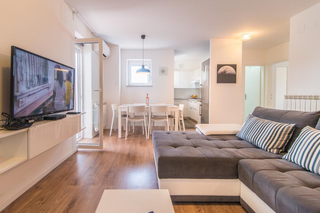 Polecam to mieszkanie ze względu na ich wielkość, lokalizację i dostęp do słońca przez cały czas. Apartament znajduje się na poddaszu, co sprawia, że nie cały czas w cieple. Posiada balkon, na którym można spędzić czas aż do późnych godzin wieczornych. Również biorąc prysznic można wziąć opalania, ponieważ duże okno w dachu jest powyżej kabiny. Pokój jest w pełni wyposażony. Cichej i spokojnej okolicy. Do morza i miasta 5-10 minut spacerem do supermarketów Lidl lub Konzum 2 minuty spacerem. Sąsiedzi miły uprzejmy, Możliwość parkowania w pobliżu domu lub parking wewnątrz. Bardzo przystępne ceny dla takich warunkach. Polecam wakacje przed sezonem turystycznym, który jest równie ciepły i tańsze. Z wielką chęcią wrócę tam następnym razem.