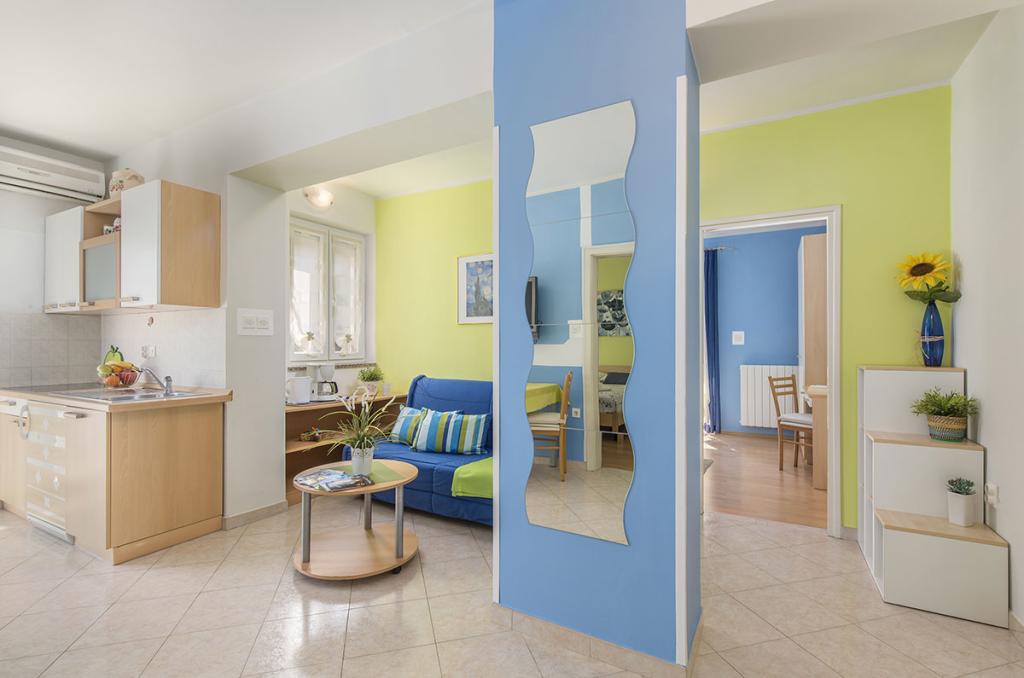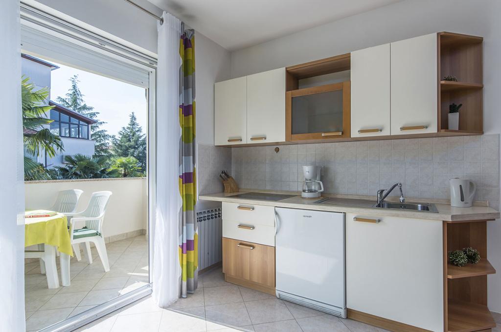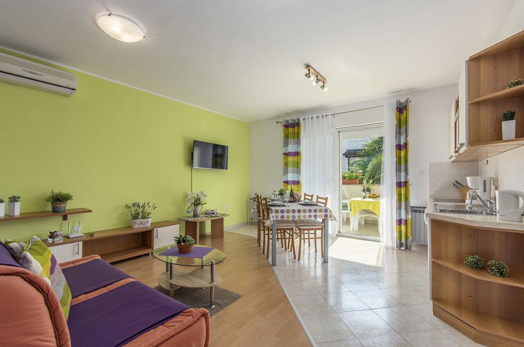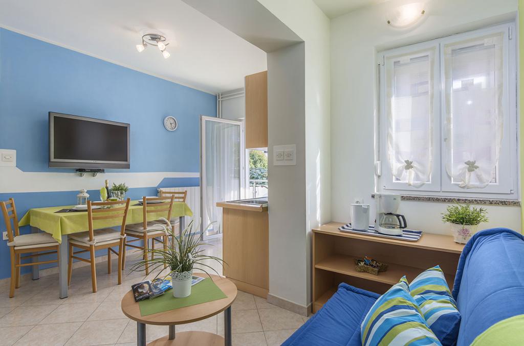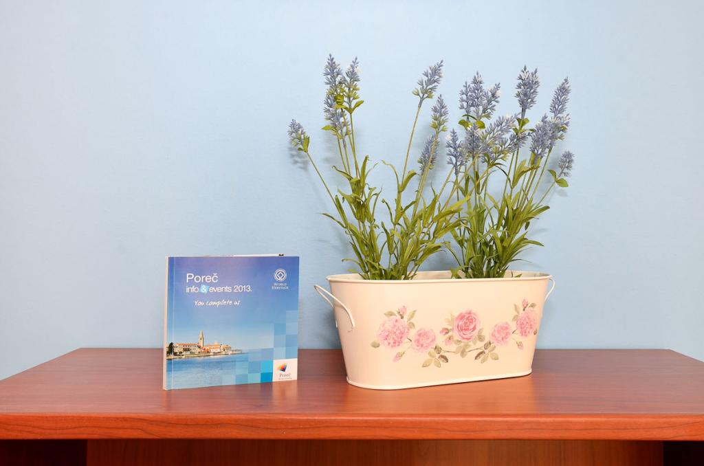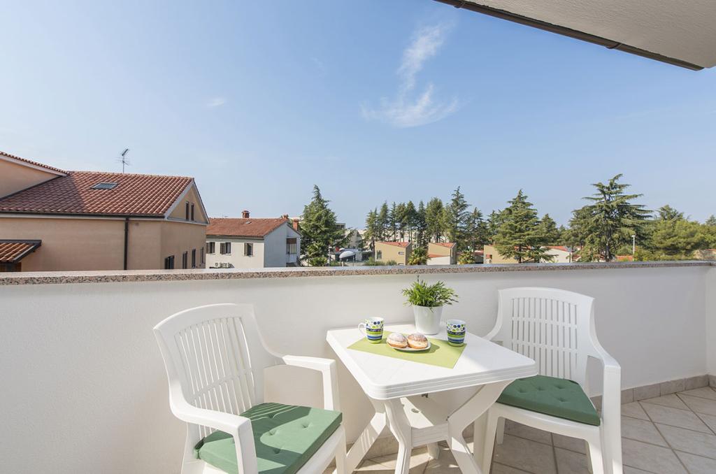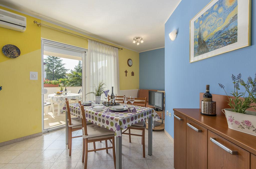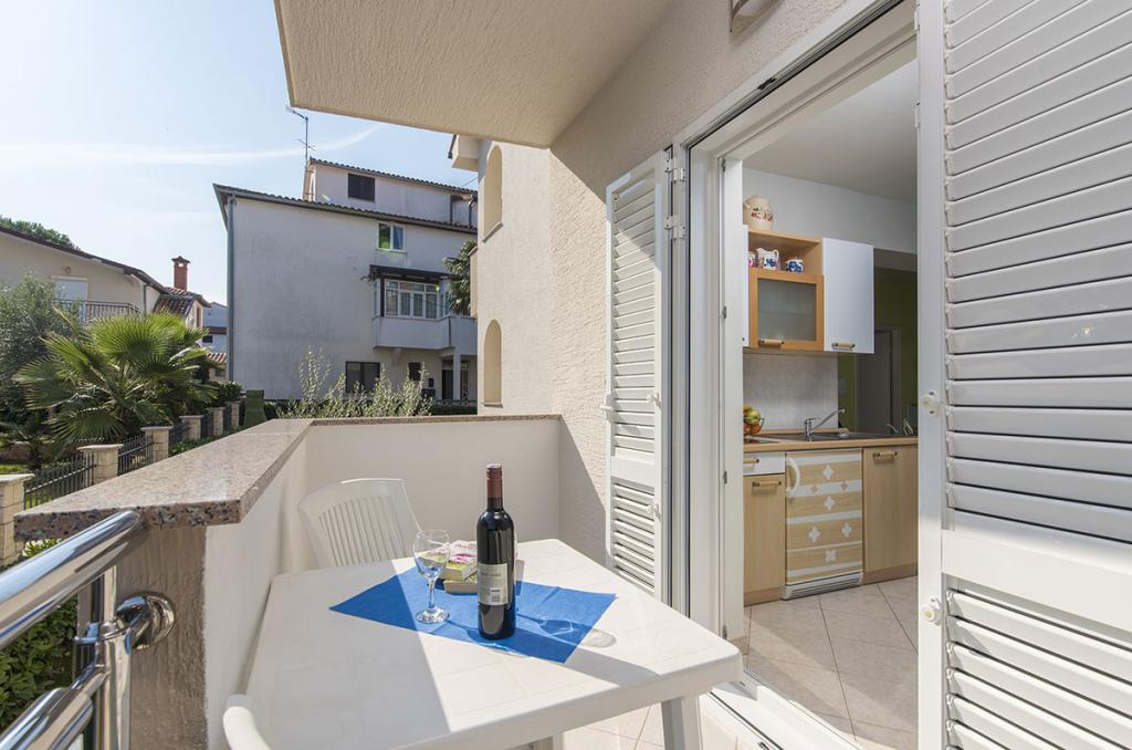 Apartamenty znajdują się w spokojnej dzielnicy Poreč, 5 minut spacerem od plaży. W promieniu 50 metrów znajdują się sklepy, kilka piekarni, 5-6 restauracji, korty tenisowe i inne obiekty sportowe. Do starego centrum miasta można dojść w 15 minut promenadą nadmorską lub skorzystać z kursującego przez cały dzień pociągu turystycznego.