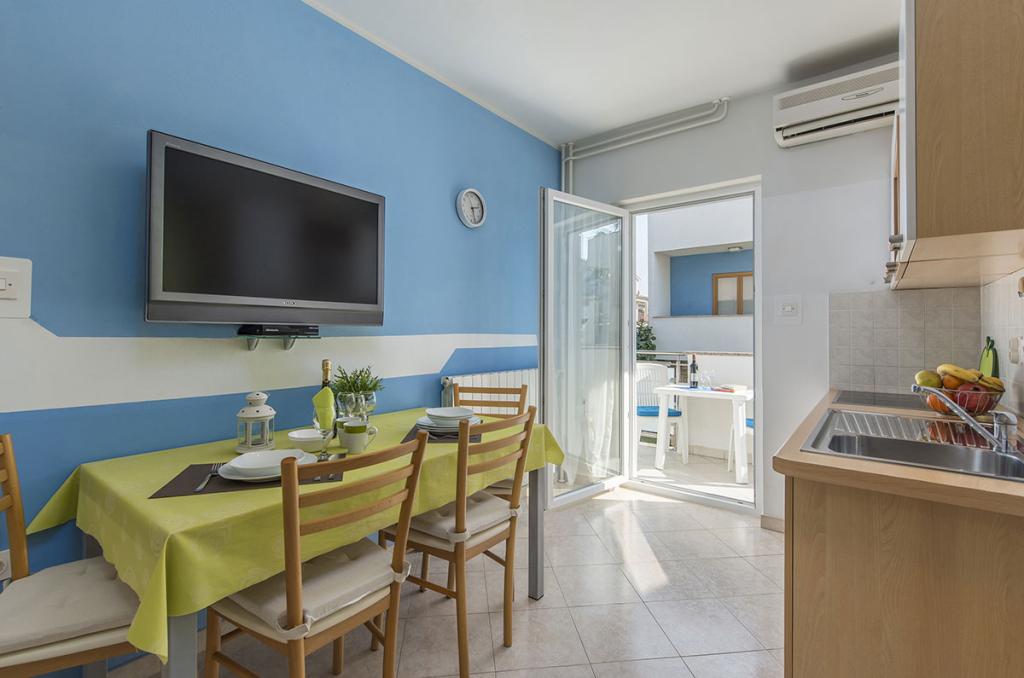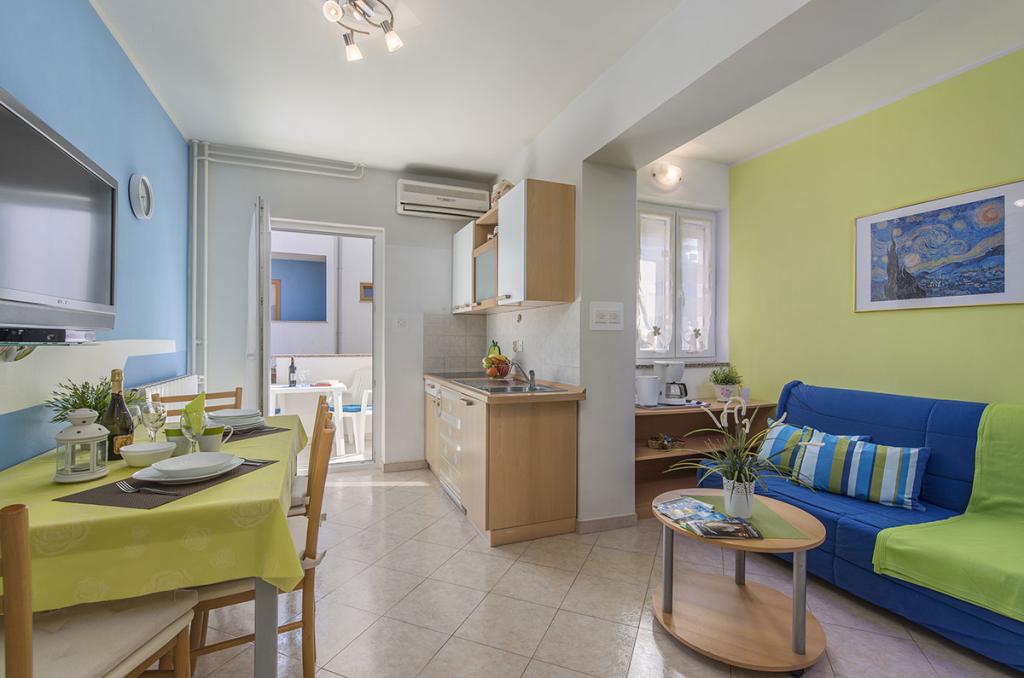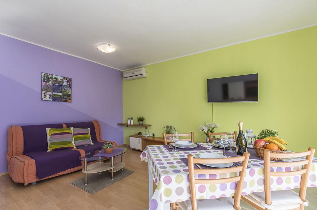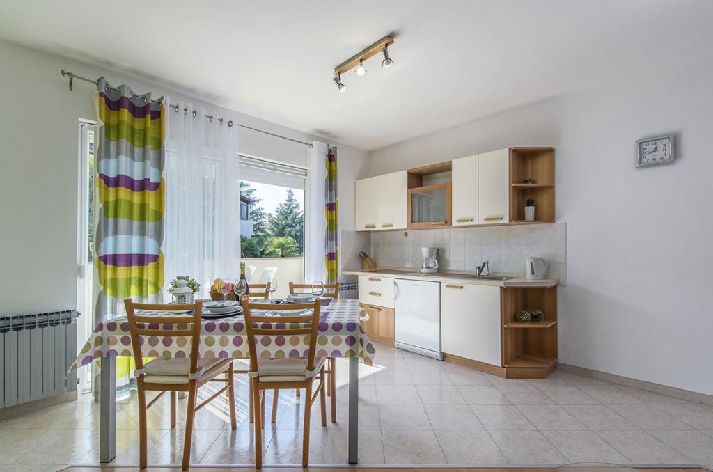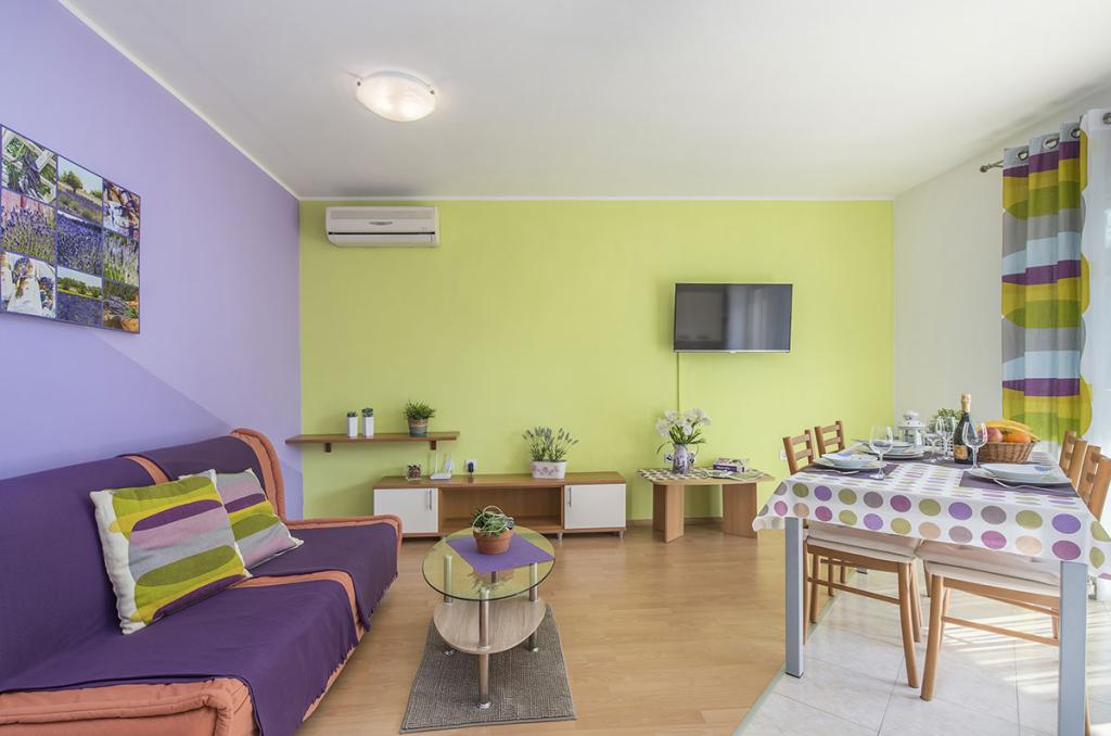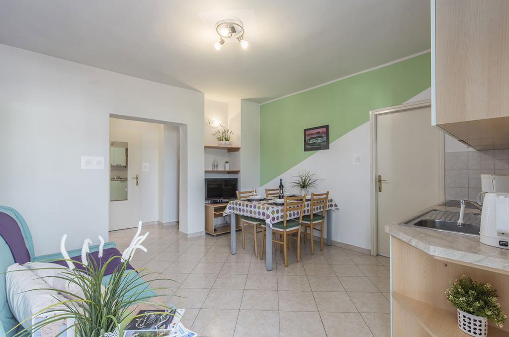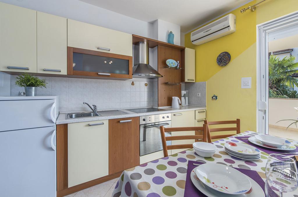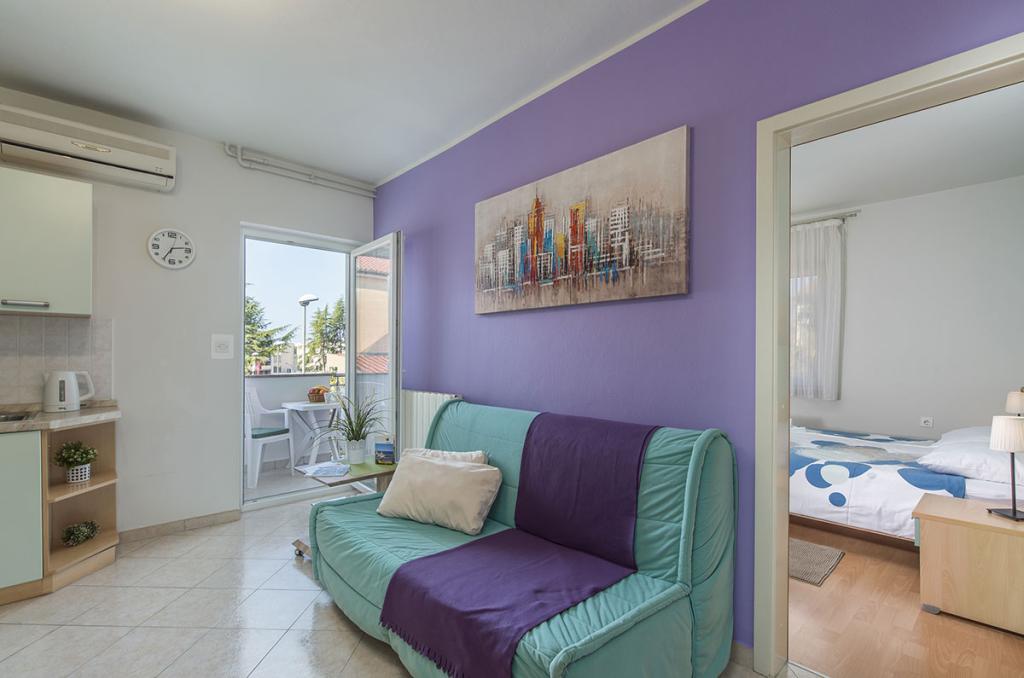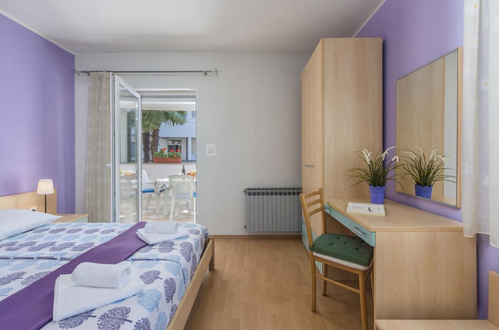 Apartamenty znajdują się w spokojnej dzielnicy Poreč, 5 minut spacerem od plaży. W promieniu 50 metrów znajdują się sklepy, kilka piekarni, 5-6 restauracji, korty tenisowe i inne obiekty sportowe. Do starego centrum miasta można dojść w 15 minut promenadą nadmorską lub skorzystać z kursującego przez cały dzień pociągu turystycznego.