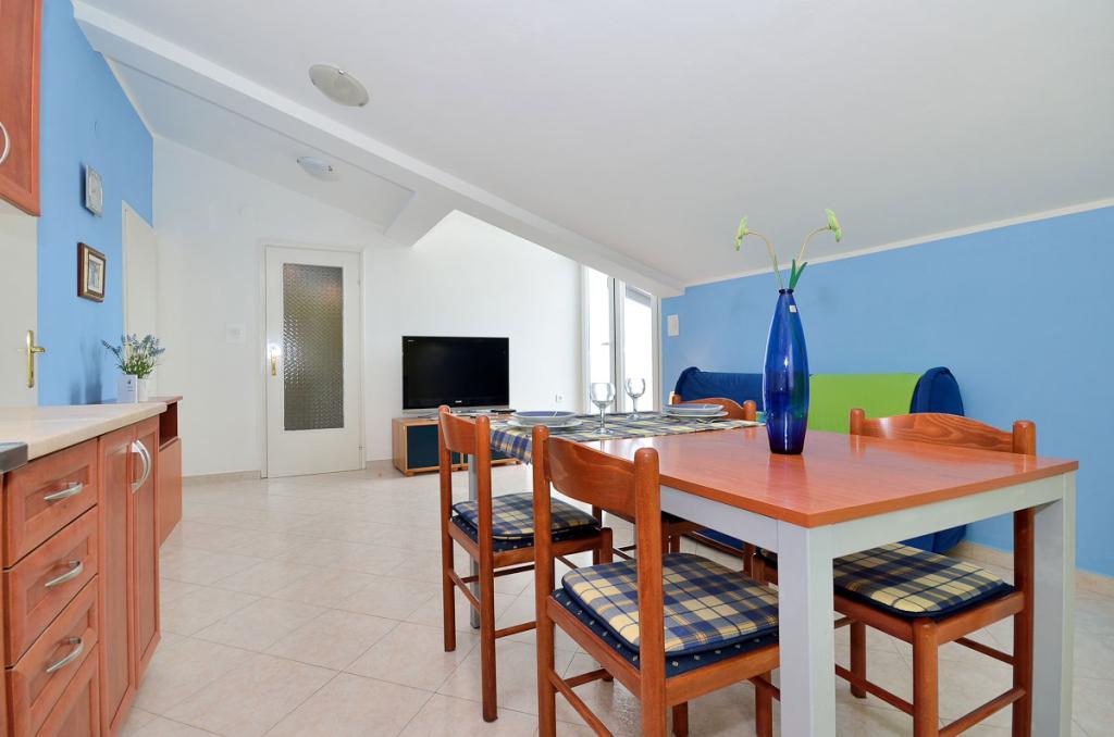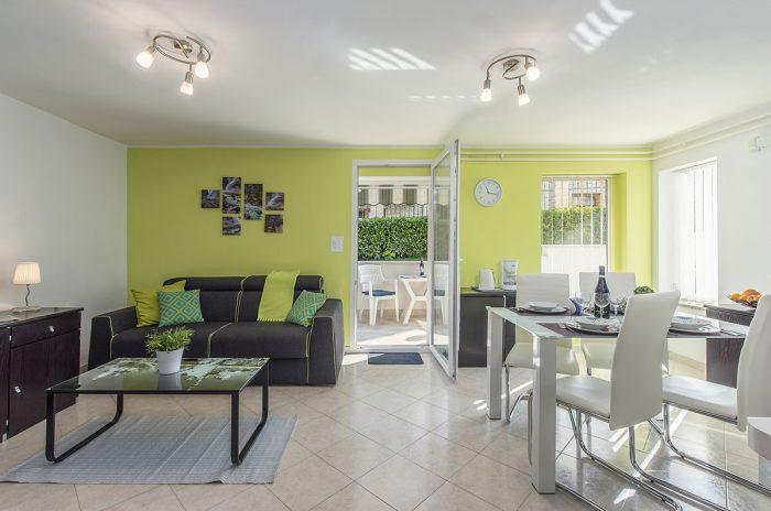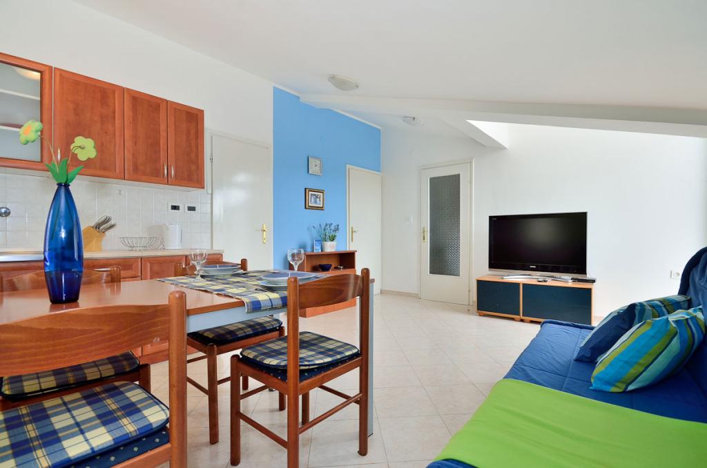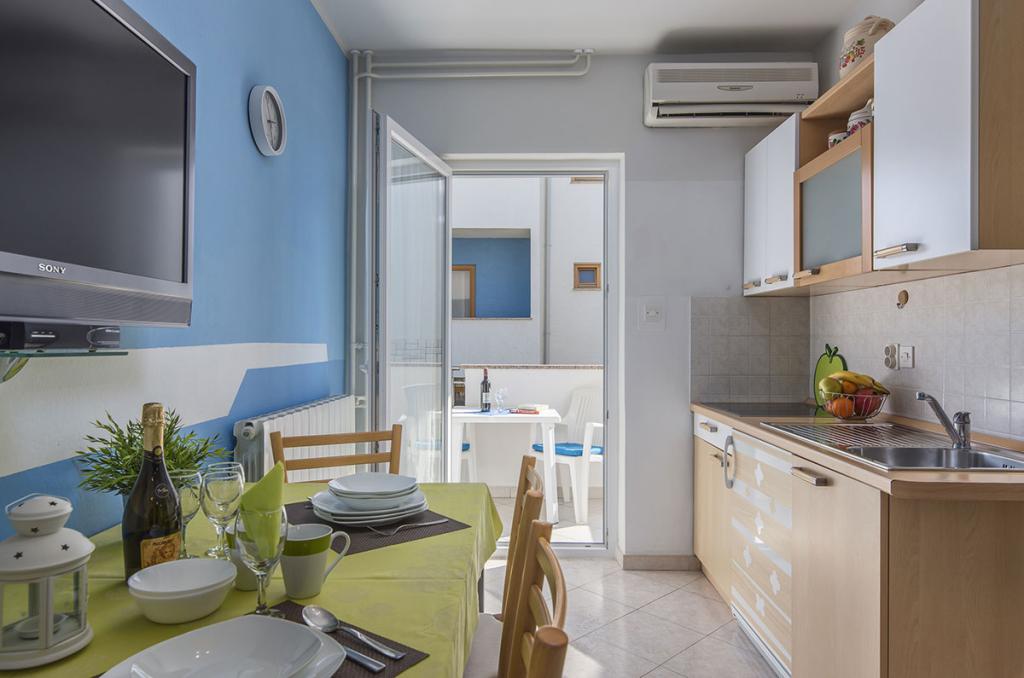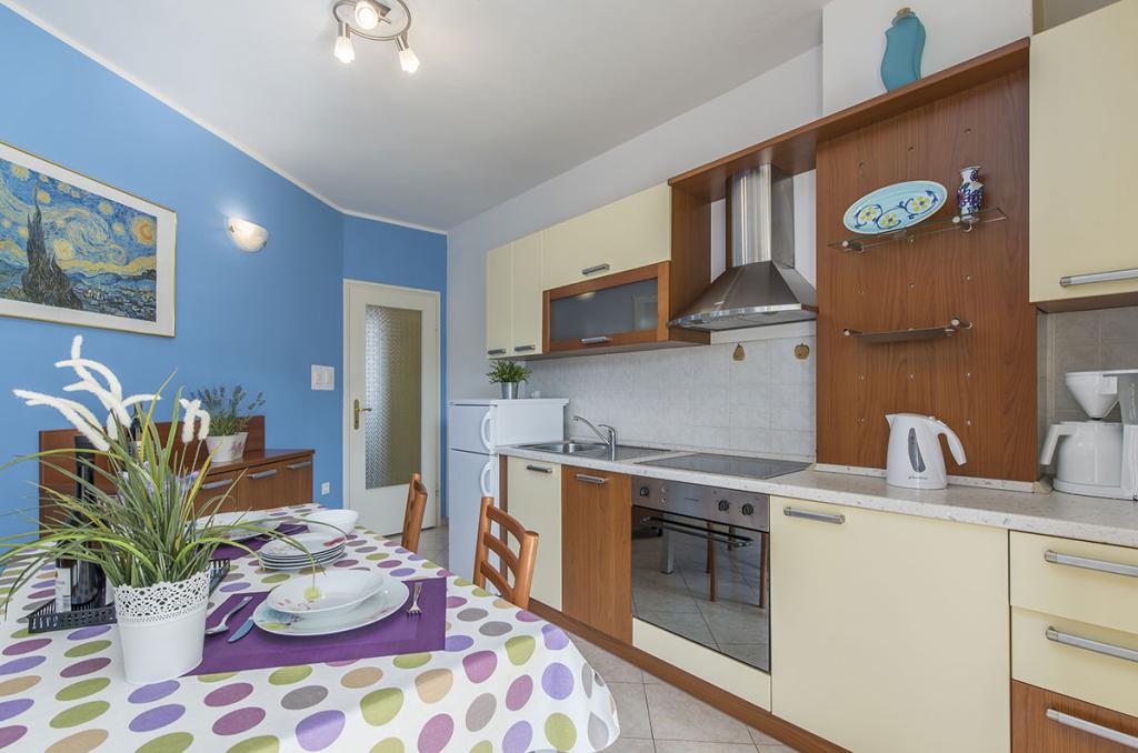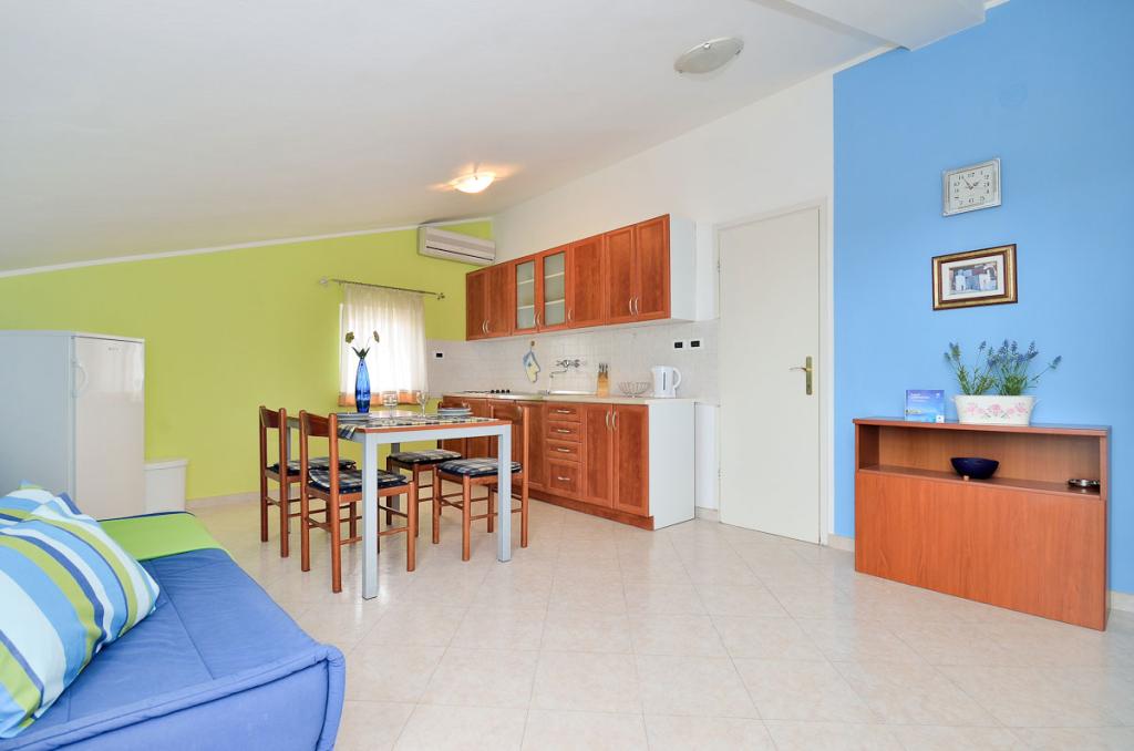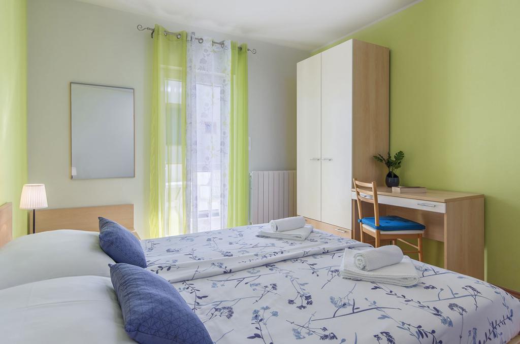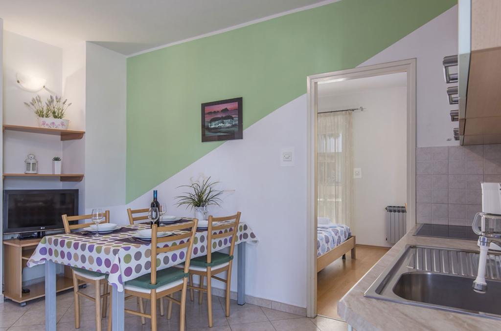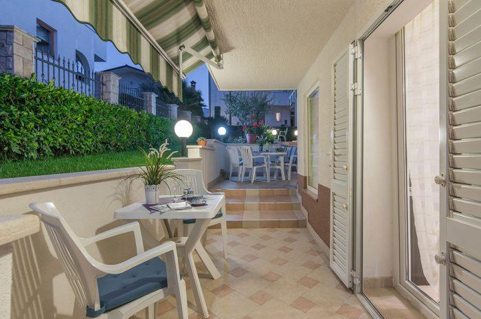 Apartamenty znajdują się w spokojnej dzielnicy Poreč, 5 minut spacerem od plaży. W promieniu 50 metrów znajdują się sklepy, kilka piekarni, 5-6 restauracji, korty tenisowe i inne obiekty sportowe. Do starego centrum miasta można dojść w 15 minut promenadą nadmorską lub skorzystać z kursującego przez cały dzień pociągu turystycznego.