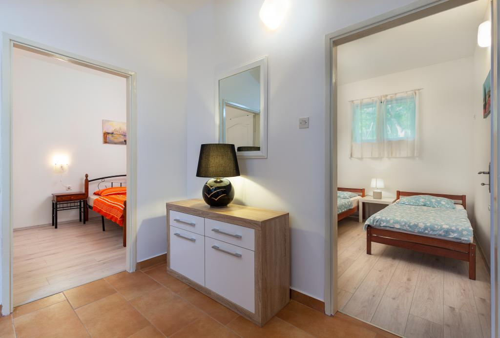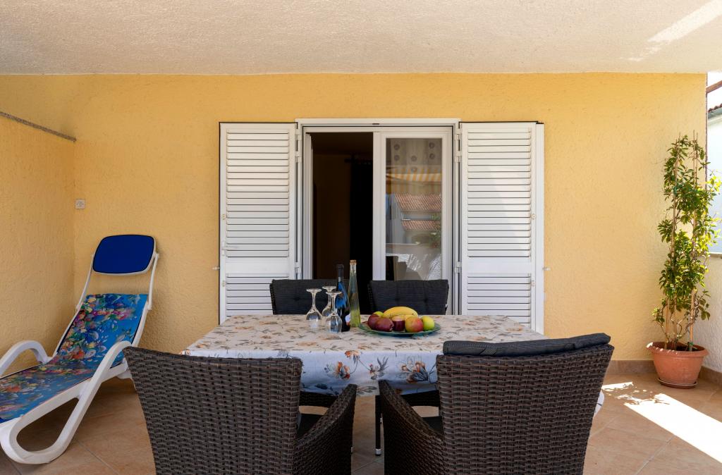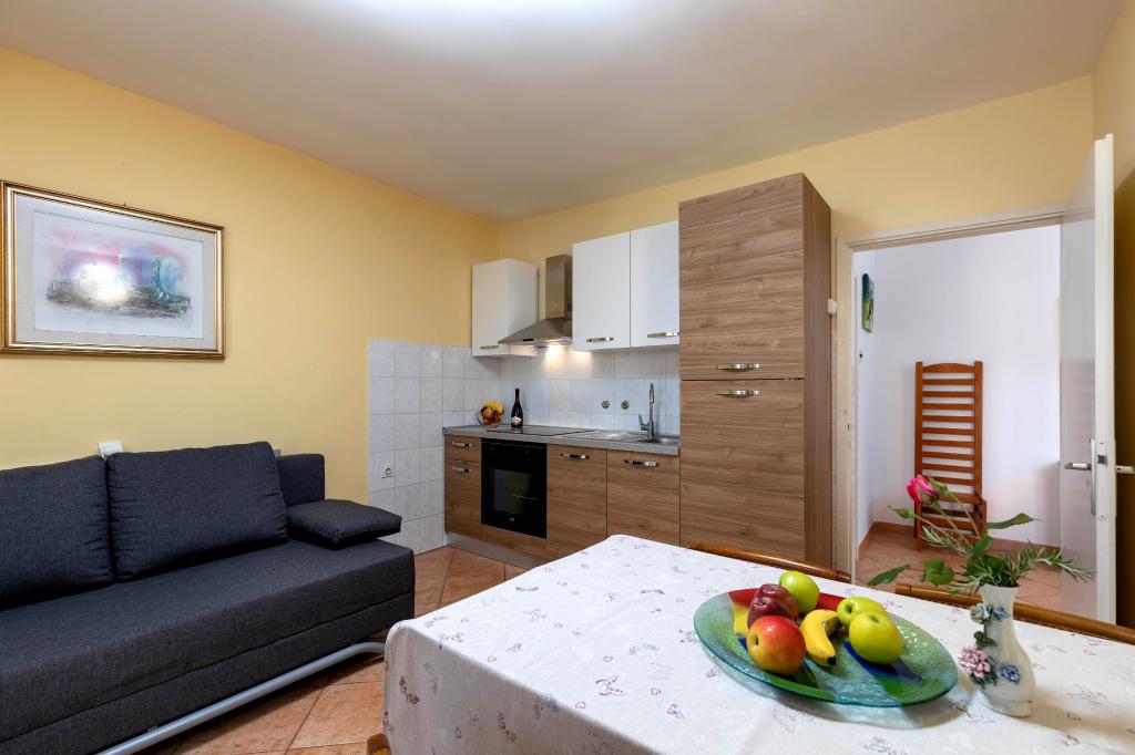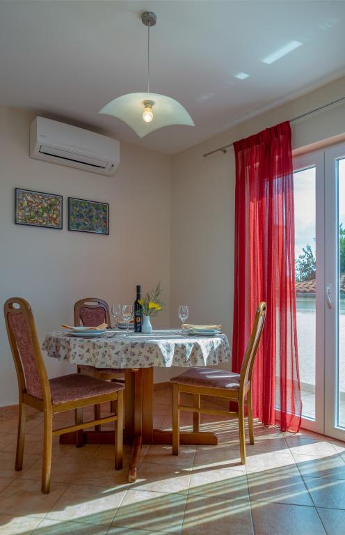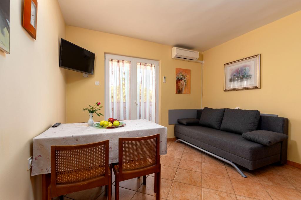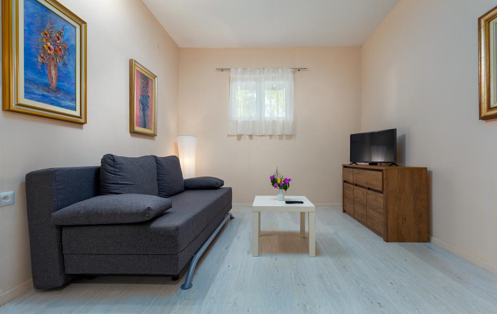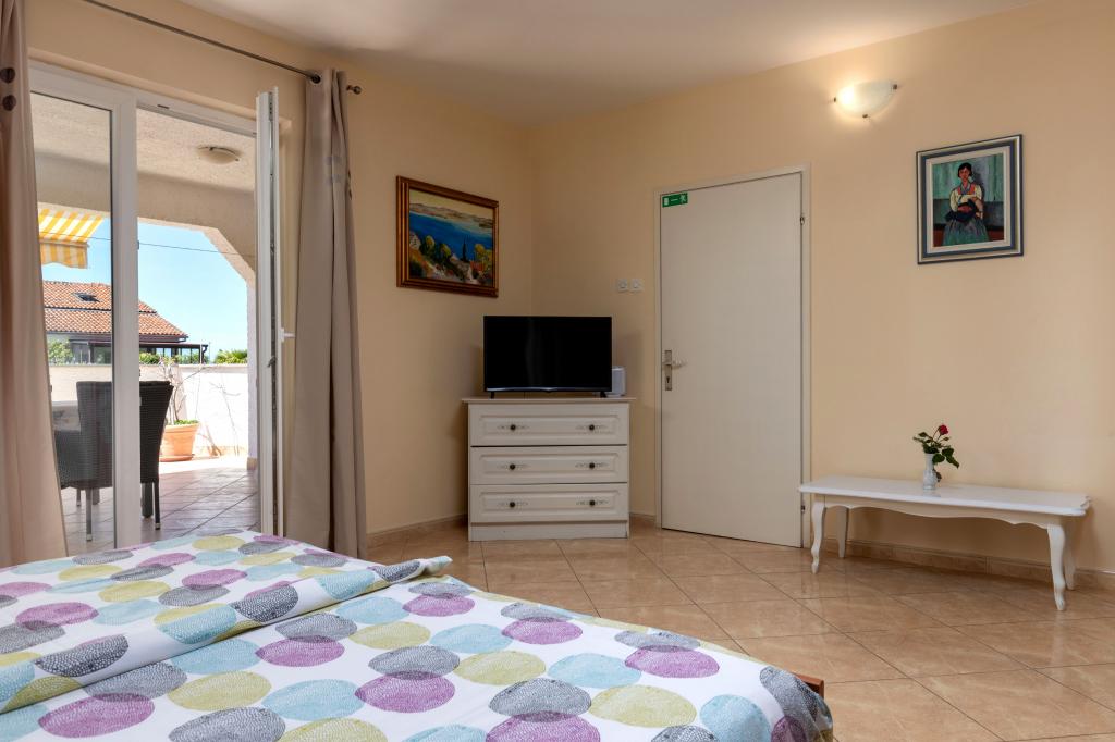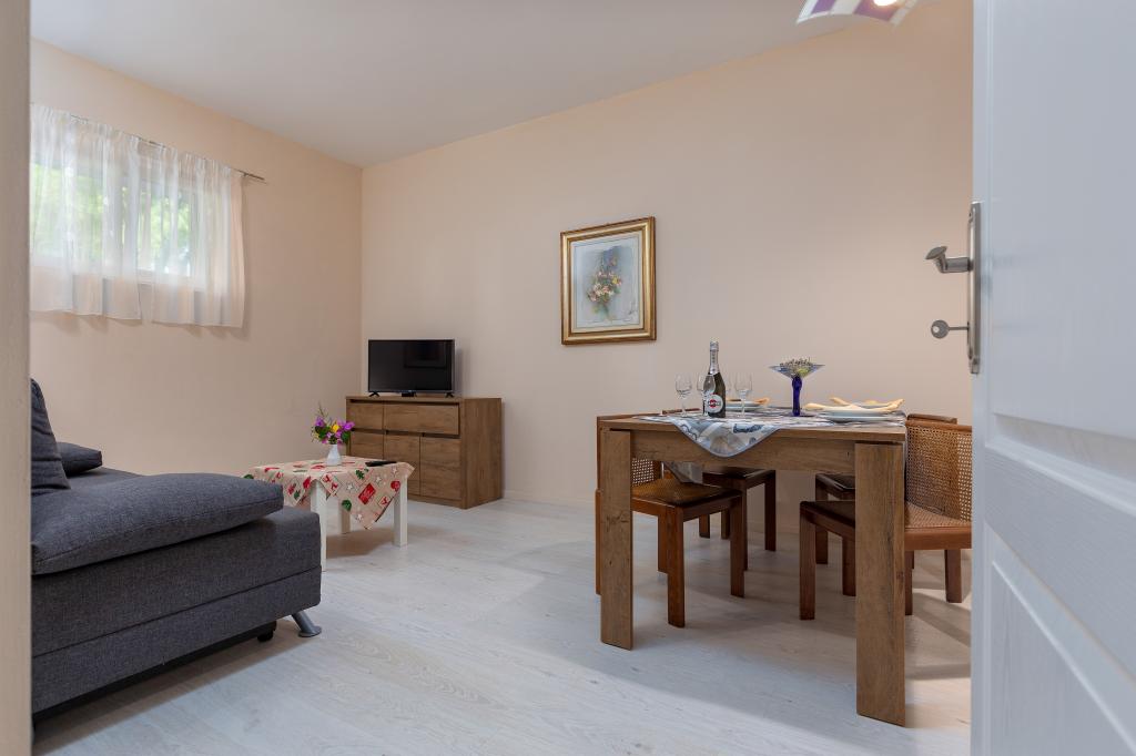 Apartamenty są ładnie urządzone i znajdują się 2 minuty jazdy samochodem od morza i miasta. Wszystkie apartamenty posiadają duży taras, niektóre z widokiem na morze. Parking dla samochodów znajduje się na ogrodzonym podwórzu.