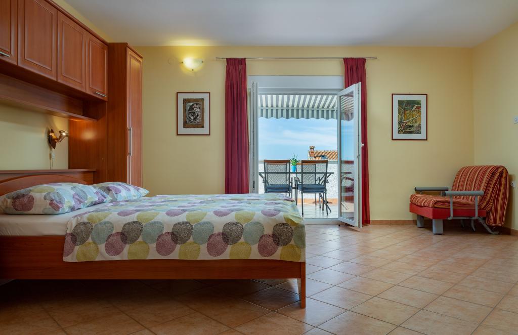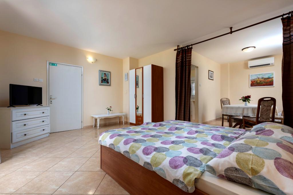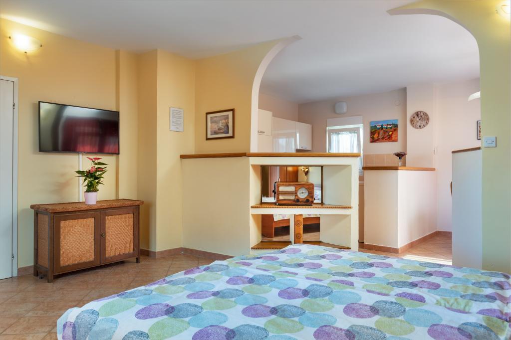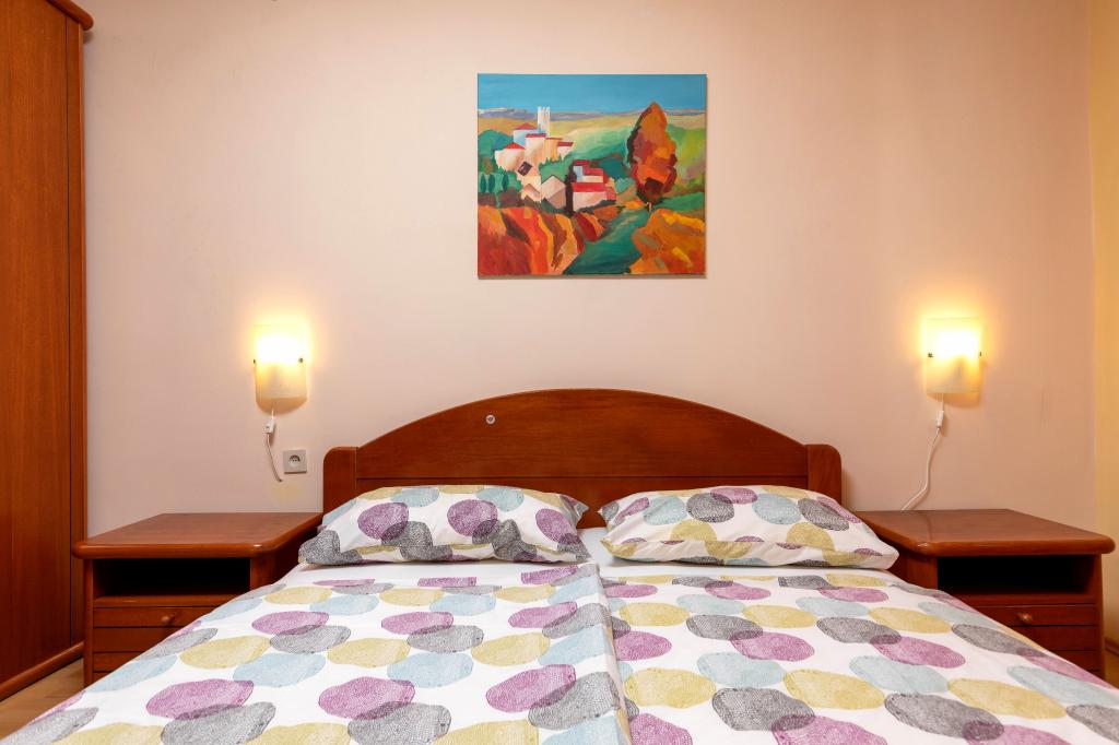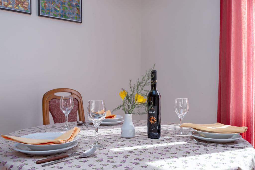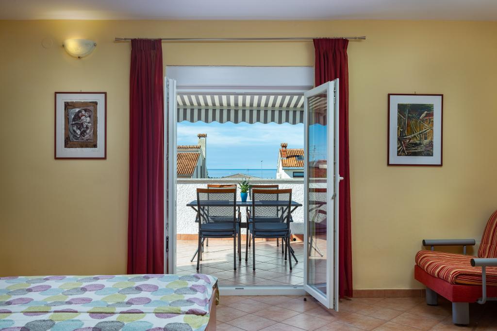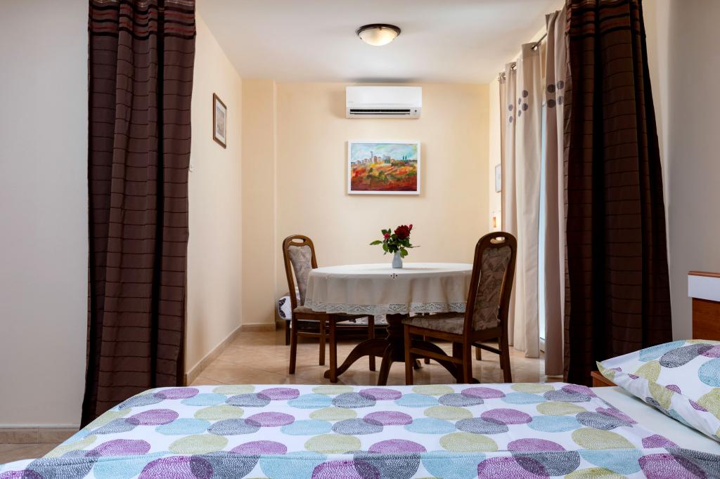 Apartamenty są ładnie urządzone i znajdują się 2 minuty jazdy samochodem od morza i miasta. Wszystkie apartamenty posiadają duży taras, niektóre z widokiem na morze. Parking dla samochodów znajduje się na ogrodzonym podwórzu.