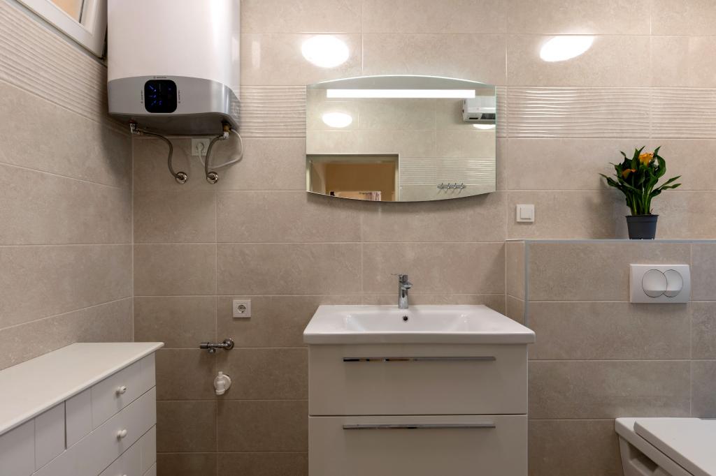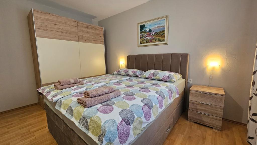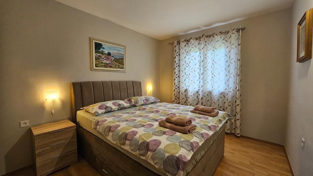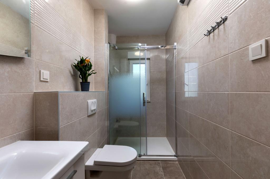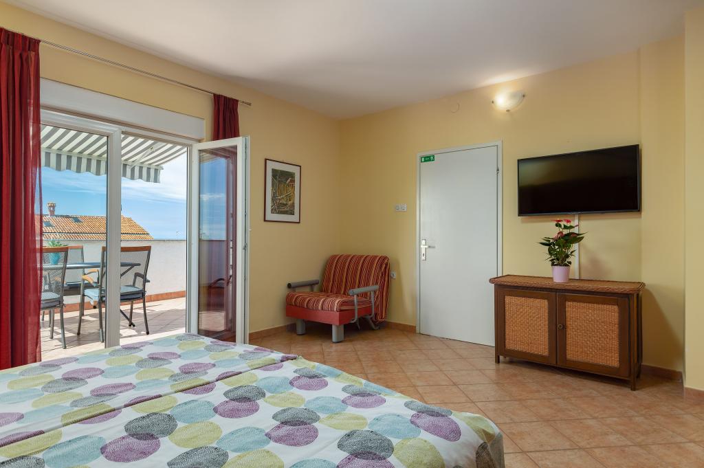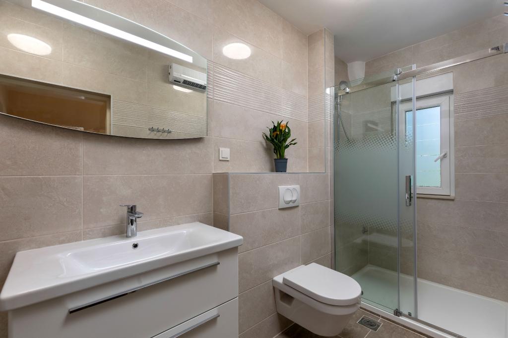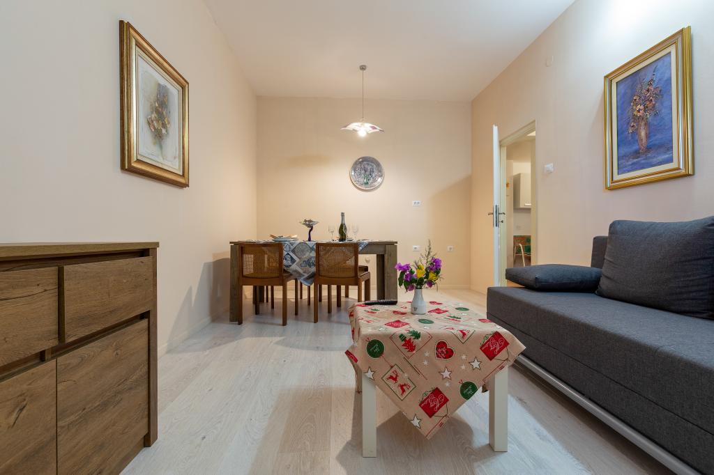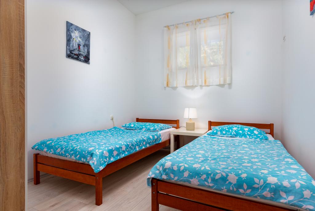 Apartamenty są ładnie urządzone i znajdują się 2 minuty jazdy samochodem od morza i miasta. Wszystkie apartamenty posiadają duży taras, niektóre z widokiem na morze. Parking dla samochodów znajduje się na ogrodzonym podwórzu.