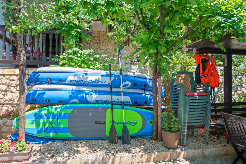 ŚNIADANIE JEST WLICZONE W CENĘ ZAKWATEROWANIA. Zapewniamy gościom wszelkie niezbędne informacje związane z tą okolicą i nie tylko, a także dostępne są ulotki z ofertami wycieczek. Szczegółowe informacje i regulamin domu można znaleźć w każdej kwaterze. Na krótsze wycieczki gość może wypożyczyć 2 kajaki za symboliczną cenę 2 € za godzinę. Zwierzęta są akceptowane, należy zgłosić i potwierdzić. Na plaży mamy krzesła i stoliki, zjeżdżalnię dla dzieci ... Podwórko z parkingiem z zabezpieczonym miejscem na 1 samochód na każdy apartament. Do dyspozycji Gości jest również grill z zadaszoną częścią wypoczynkową.