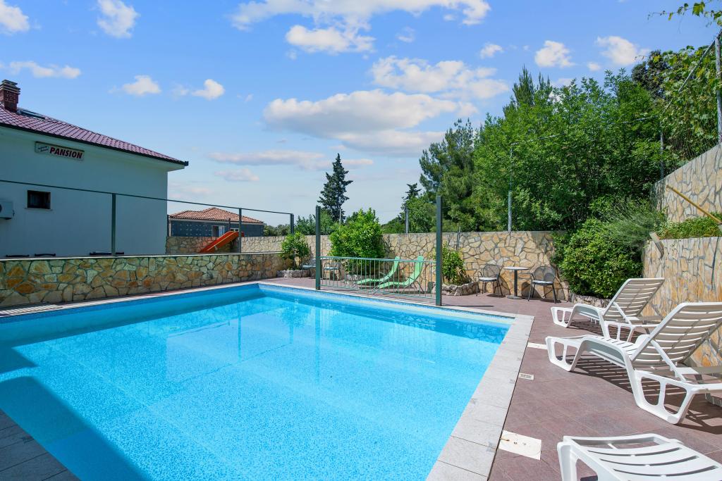 Pensjonat znajduje się w spokojnej wiosce z domkami, bez ruchu i tłumów. Znajduje się w otoczeniu dziewiczej przyrody blisko morza i plaży, odpowiednie dla osób kochających spokój i relaks oraz rodzin z dziećmi. Obok domu znajduje się odkryty basen. Dodatkowo oferujemy obiady według naszej oferty oraz sprzedaż napojów alkoholowych i bezalkoholowych oraz lodów. Program wycieczek i wizyt w mieście Zadar i innych okolicznych ciekawych miejscach, a także bliskość 7 parków narodowych, co jest zaletą lokalizacji, w której jesteśmy. Odwiedź nas, a będziecie naszymi drogimi gośćmi, a my zostaniemy przyjaciółmi ...