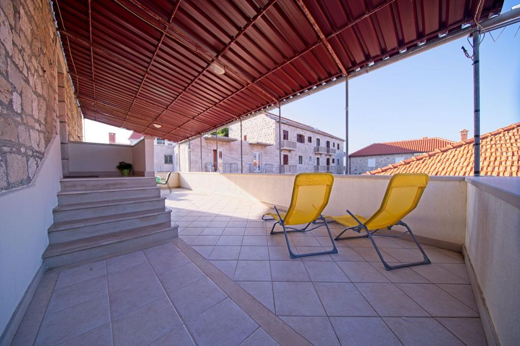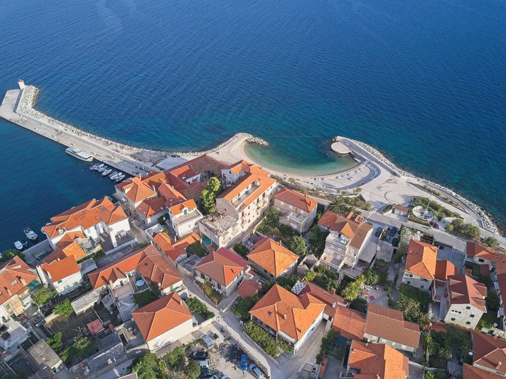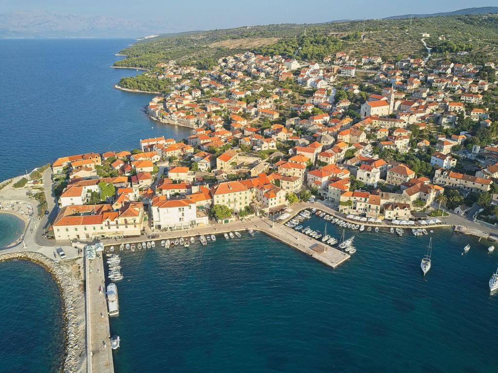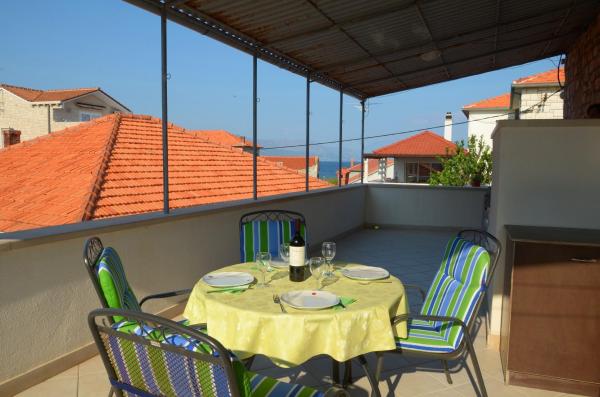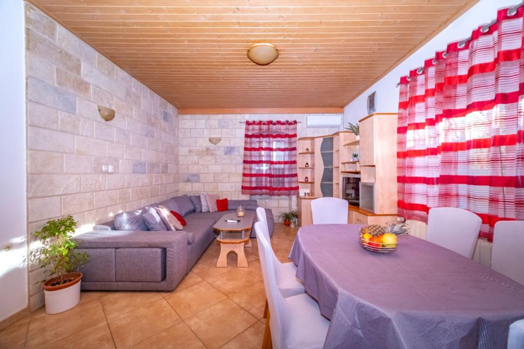 Dom położony jest w niewielkiej, malowniczej miejscowości Postira. W pobliżu znajdują się restauracje, sklepy, deptaki i dwa piękne piaszczyste plaże. Obiekt znajduje się w małej uliczce bez ruchu i tłumów. Mieszkanie na parterze z dwóch sypialni, jedna z podwójnym łóżkiem i innych łóżkami piętrowymi. Goście mogą mieć klimatyzację, bezpłatny internet, pralkę, zmywarkę i przestronny zadaszony taras. Na pierwszym piętrze jest mieszkanie z trzema sypialniami, które mogą pomieścić maksymalnie 4 osoby. Jest wyposażony w klimatyzację, bezpłatny dostęp do Internetu, pralką i zmywarką. Posiada również dwa balkony i duży zadaszony taras z widokiem na morze. W przedniej części domu znajduje się prywatny parking z dwoma miejscami parkingowymi.