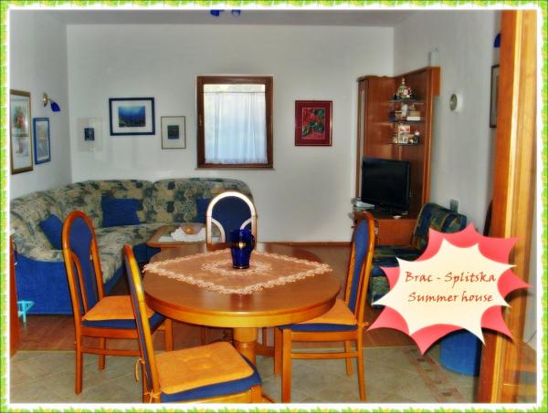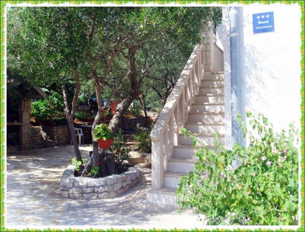 Apartamenty znajdują się w małej miejscowości Split, w pobliżu Postira. Dom jest otoczony przez gaje oliwne i jest idealnym miejscem na rodzinne wakacje i znajduje się 100 m od morza i blisko do wszystkich udogodnień. 2 mieszkania na pierwszym piętrze, a największe na ziemi, otoczony dużym ogrodem. Wszystkie apartamenty posiadają taras i otwarty widok na morze.