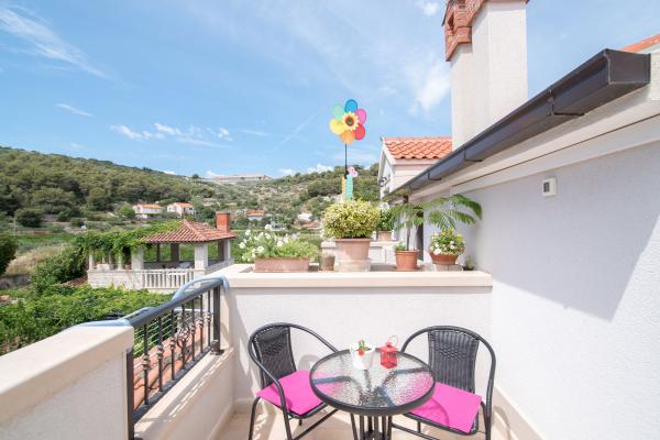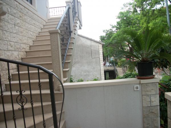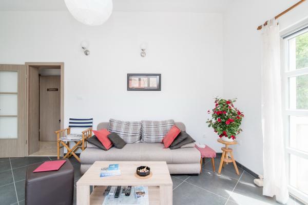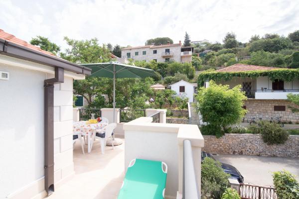 Nasze trzy apartamenty położone są w cichej alei akacji w Postira, kilka minut spacerem są dostępne supermarket, plaża jak i wiele barów i restauracji. Dom został zbudowany z kamienia i otoczony jest ogrodem, w którym można korzystać z dużego grilla. Przed domem jest wystarczająco dużo miejsca do parkowania. My, jako właściciele mieszkają na parterze. Całe pierwsze piętro (90m²) zajmuje nasze pierwsze mieszkanie Mare App 1 - powrót do lat 60-tych