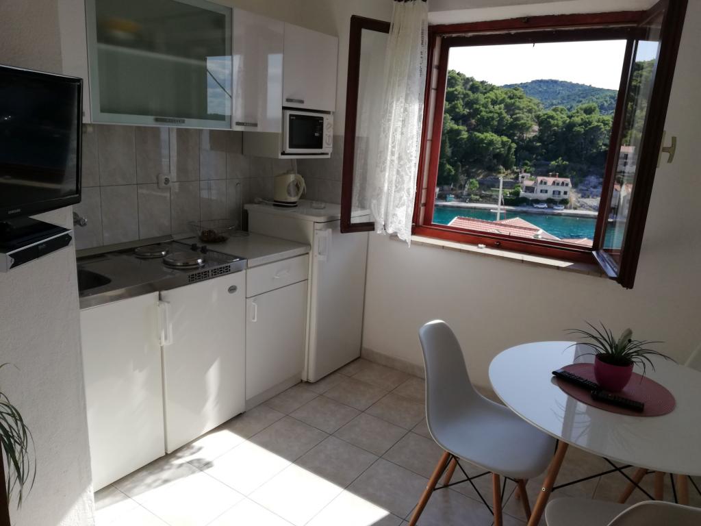 Bardzo dobry i czysty apartament ze wszystkim, czego potrzeba do przyjemnego pobytu, balkon z pięknym widokiem na morze i zatokę, mili gospodarze, spokojna okolica, wszystko godne polecenia!
