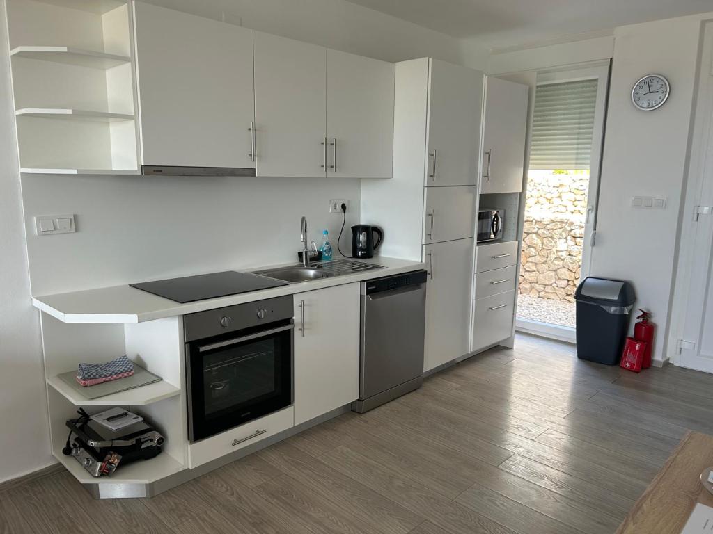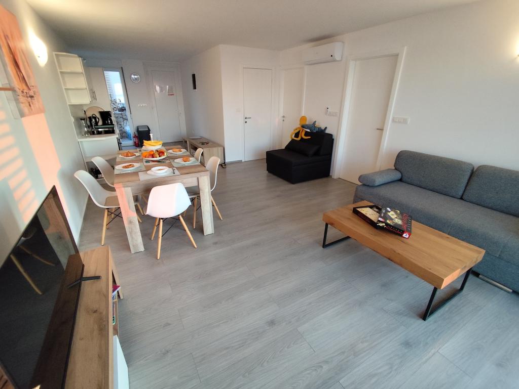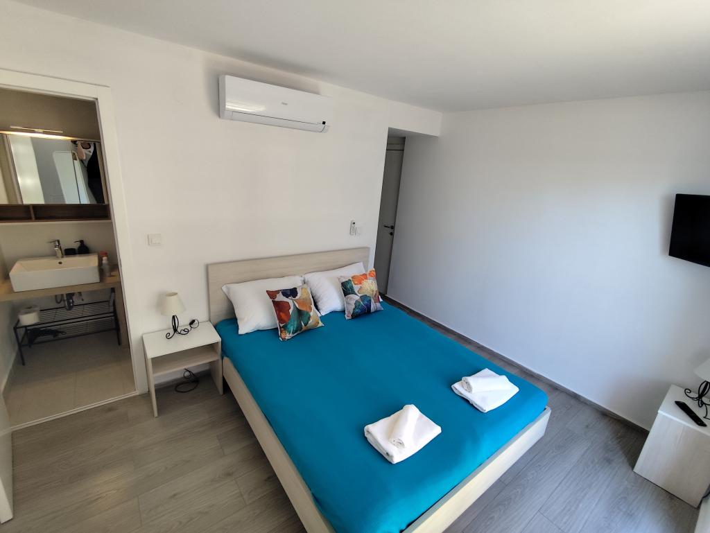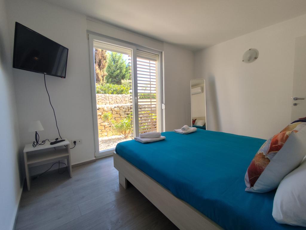Apartament MORE I MIR położony jest w spokojnej części miejscowości Povljana, na półwyspie Rastavac, zaledwie 150 metrów od morza i piaszczystej plaży Trokut. Apartament znajduje się na parterze i jest w pełni wyposażony we wszystkie udogodnienia zapewniające przyjemny wypoczynek. Obiekt dysponuje 2 sypialniami z dwiema łazienkami, salonem i kuchnią. Dodatkowe łóżka w pokoju dziennym (rozkładana sofa i fotel). Mieszkanie jest w pełni wyposażone w sprzęt AGD, 3 klimatyzatory, 3 telewizory. Użytkownicy apartamentów mają do dyspozycji bezpłatny parking i internet, basen, możliwość korzystania z grilla, prysznic zewnętrzny oraz wspólną strefę zabaw (zjeżdżalnia, tenis stołowy itp.). Apartament posiada prywatny taras i ogródek z leżakami i miejscami do siedzenia, z widokiem na morze, 1. rząd. W bezpośrednim sąsiedztwie znajduje się pole namiotowe, piekarnia, sklep i restauracja. Povljana oferuje rodzinom doskonałe warunki do wypoczynku dzięki pięknym piaszczystym i kamienistym plażom oraz czystemu, płytkiemu morzu. Centrum miejscowości oddalone jest o 3,6 km.