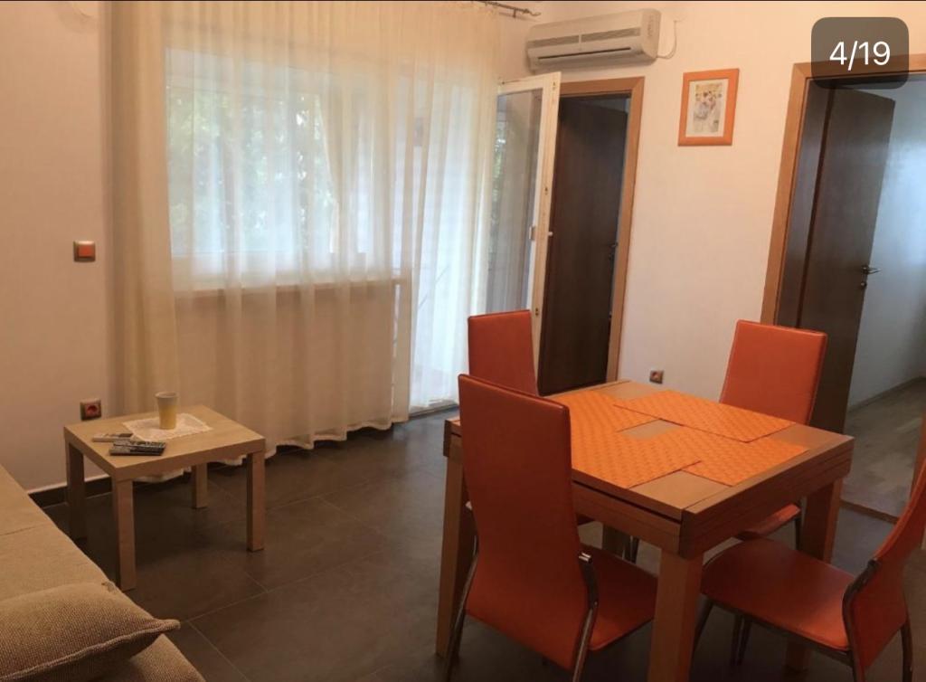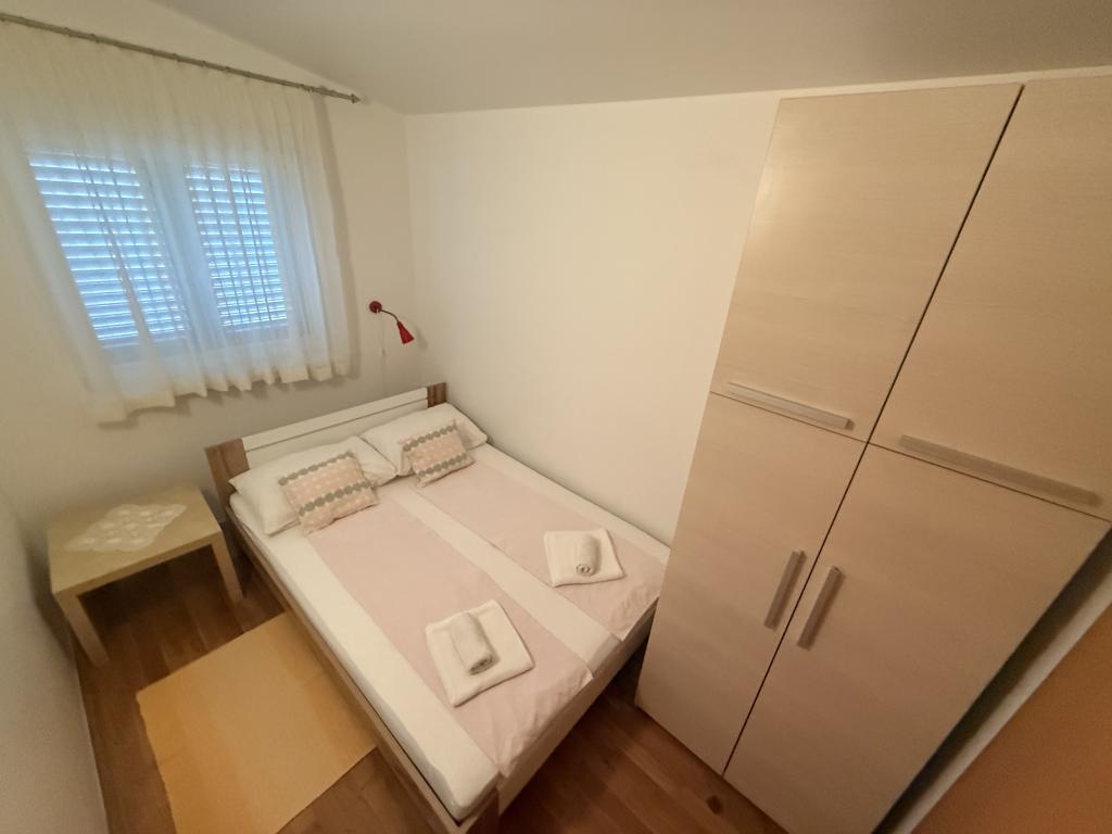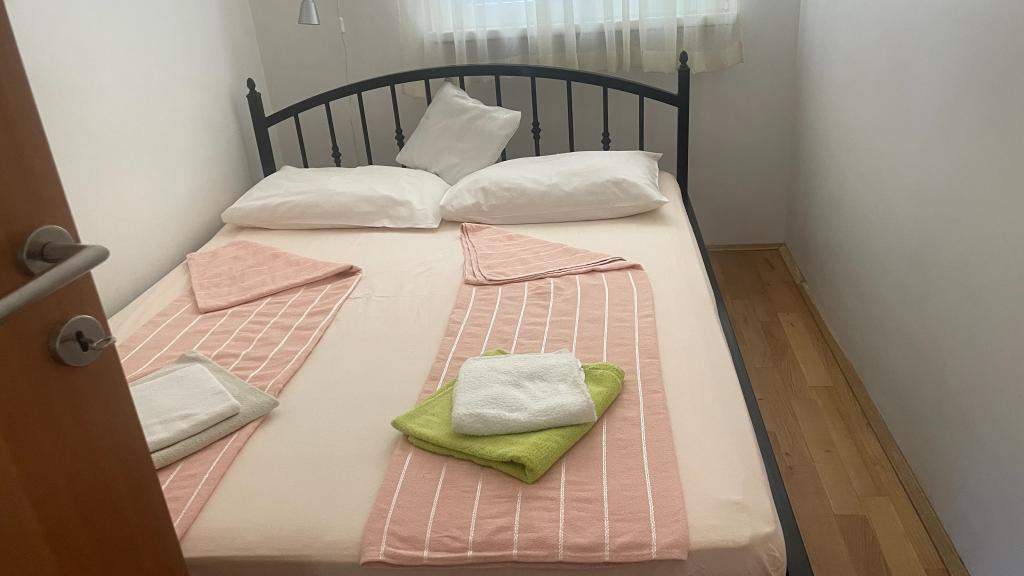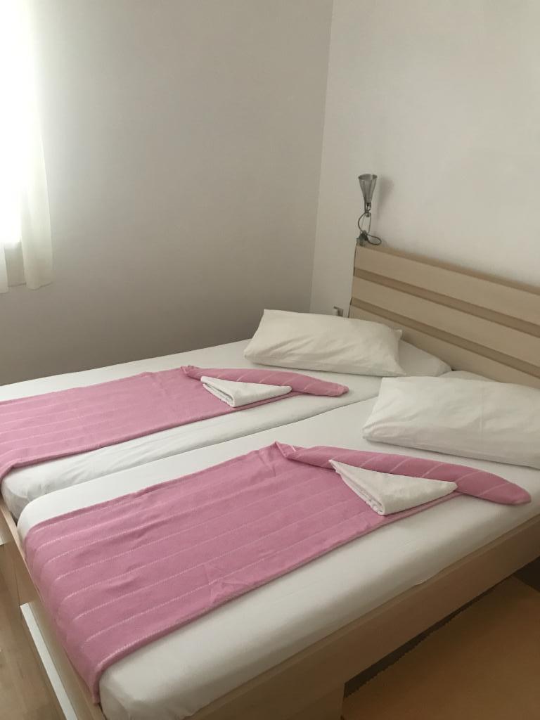 Apartamenty idealne na rodzinne wakacje Oferujemy trzy niemal identyczne apartamenty, każdy przystosowany do komfortowego wypoczynku rodzinnego. Każdy apartament składa się z: Salonu z jadalnią i kuchnią Dwóch sypialni: rodziców (160x200) i dziecięca (140x200) Salonu z sofą. Kuchnia wyposażona jest w standardowe piekarniki z płytą indukcyjną, małą lodówkę, czajnik i ekspresy przelewowe do kawy, a także wszystkie niezbędne naczynia. Łazienka z kabiną prysznicową jest mała, ale funkcjonalna. Każdy apartament ma cichy kącik w formie loggii z przesuwaną ścianą. Na wszystkich oknach znajdują się moskitiery. Do dyspozycji naszych gości jest również zewnętrzny grill ze stołem i krzesłami, umożliwiający spędzanie czasu na świeżym powietrzu. Nasze standardy higieny są bardzo wysokie, co jest dla nas szczególnie ważne. Cena zawiera: Klimatyzację Opłatę klimatyczną Telewizję satelitarną (nie mamy Smart TV) Kompletne naczynia i pościel Jeden ręcznik na gościa Zwierzęta są akceptowane po uzgodnieniu i w specjalnej cenie.