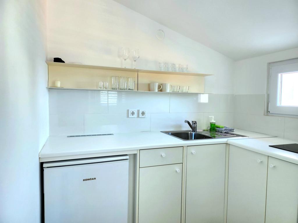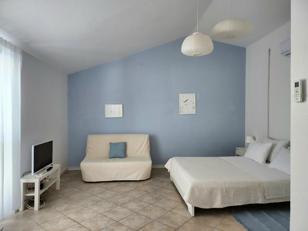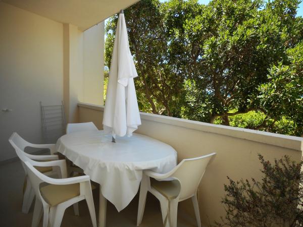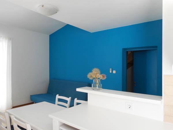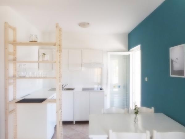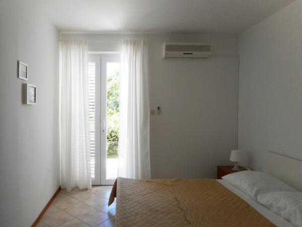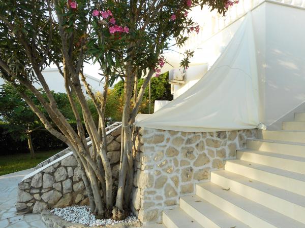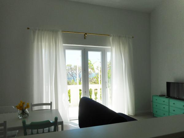 Apartament jest częścią pięknie urządzonego domu z dużym ogrodem. Wszystko w samym apartamencie jest urządzone z umiarem i nadaje się na wakacje. Duży taras jest dostępny z obu pokoi i ma widok na zachód słońca i jest w cieniu przez cały poranek, idealny na kawę z widokiem na morze. Ogród to cudowna śródziemnomorska przestrzeń pełna sosen, drzew oliwnych i nieśmiertelników z dostępnymi leżakami i meblami ogrodowymi i rozciąga się od domu do plaży. Na terenie posesji znajduje się duży parking. Zdjęcia nie oddają komfortu, czystości, światła i wszystkich innych cech tego zakwaterowania. Gospodyni jest niezwykle miła.