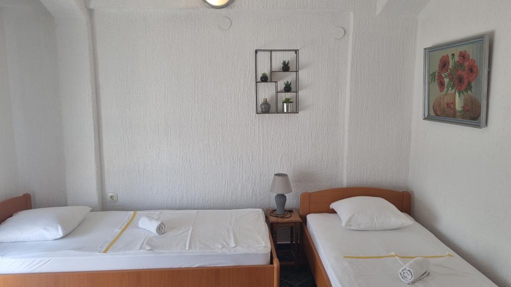W pełni wyposażone apartamenty w rodzinnym domu, który znajduje się zaledwie 200 metrów od plaży i 500 m od centrum miasta, gdzie znajdują się liczne kawiarnie, kawiarnie. Sklep znajduje się w odległości 5 minut spacerem. Povljana oferuje piasku i żwiru plaży. Apartamenty posiadają balkony z widokiem na morze.