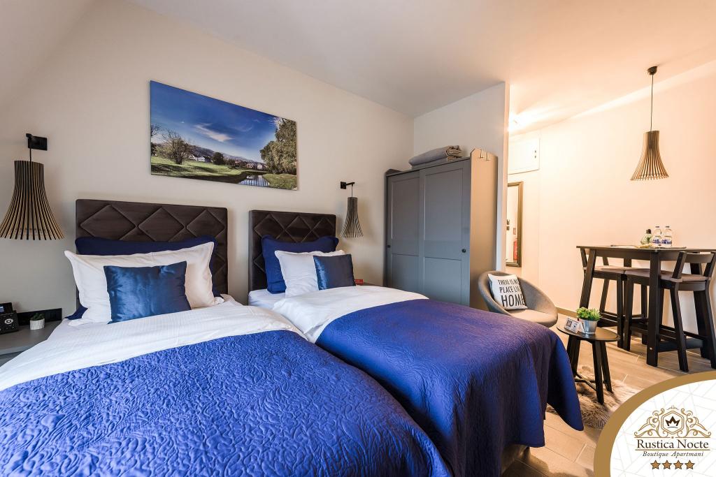 W samym sercu Slawonii, na początku deptaka w Požega, apartamenty Rustica Nocte Boutique są idealnym miejscem na wymarzone wakacje. Aby Państwa wypoczynek był jak najprzyjemniejszy, nasze nowoczesne apartamenty oferują Państwu sprzęt najwyższej jakości, a szczególnie chcielibyśmy podkreślić inteligentny system zarządzania całym apartamentem, bezpłatne szybkie Wi-Fi oraz Internet przewodowy i bezprzewodowy, Łóżka typu king-size boxspring, cyfrowe sejfy, telewizory Ultra HD Ambilight, 50-calowe odbiorniki telewizyjne z Netflix, satelitarnymi i lokalnymi programami oraz oświetlenie LED Ambilight w oknach, wentylowane i ogrzewane łazienki oraz w pełni wyposażone kuchnie w każdym z apartamentów. W każdym apartamencie znajduje się również minibar z napojami bezalkoholowymi i alkoholowymi oraz przekąskami. W apartamentach znajduje się również kącik dla dzieci ze stolikami, zabawkami, książeczkami do kolorowania i matami do zabawy. Dzięki temu można zaplanować urlop bardzo beztrosko.