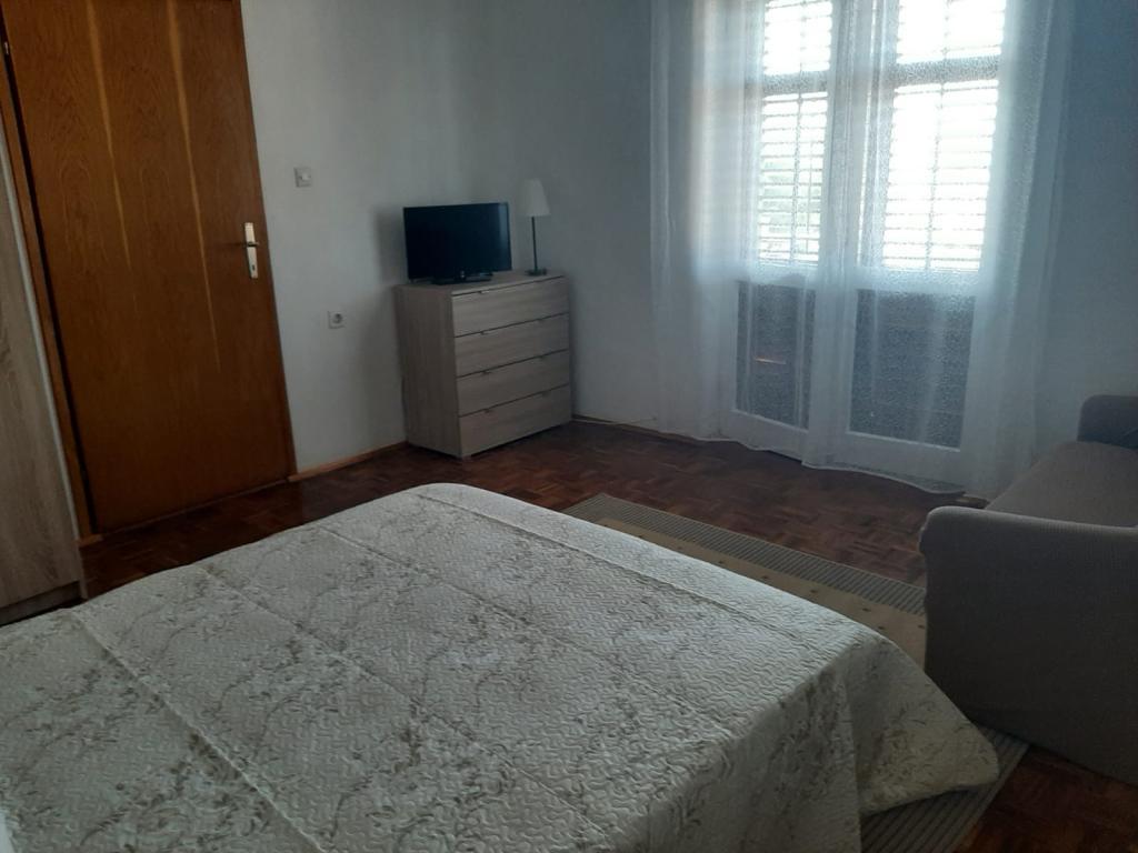 Apartament z dwiema sypialniami znajduje się na pierwszym piętrze starej kamiennej willi z XVI wieku w spokojnej części Preko. Dom znajduje się zaledwie kilka kroków od trzech plaż (piaszczysta plaża Jaz, żwirowa Kašun i betonowa przed domem) oraz boisko do siatkówki plażowej. Na plażach znajdują się liczne udogodnienia dla dzieci oraz restauracje. Wzdłuż plaży ciągnie się promenada na spokojne i romantyczne spacery o zmierzchu. Odległość od centrum to około dwieście metrów. Mieszkanie ma dwie sypialnie z podwójnymi łóżkami, jedną łazienkę, kuchnię i taras z widokiem na morze i miasto Zadar. Dostępny jest parking.