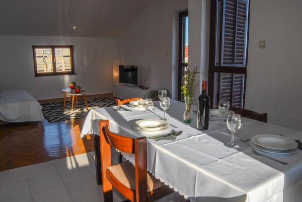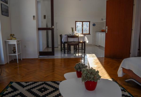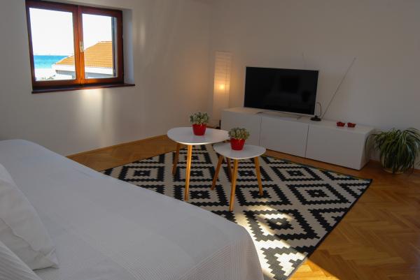 W pełni wyposażone apartamenty w spokojnej dzielnicy Preka, położone w drugim rzędzie od morza. Obiekt położony jest 2 minuty spacerem od piaszczystej plaży i 10 minut spacerem od centrum miasta. W bezpośrednim sąsiedztwie obiektu znajdują się liczne kamieniste plaże. Obiekt noclegowy składa się z pokoju dziennego z kuchnią i dodatkowym łóżkiem dla dwóch osób, łazienki, sypialni z łóżkiem małżeńskim i sypialni z dwoma łóżkami, a także dużego tarasu z widokiem na morze i kanał Zadarski.