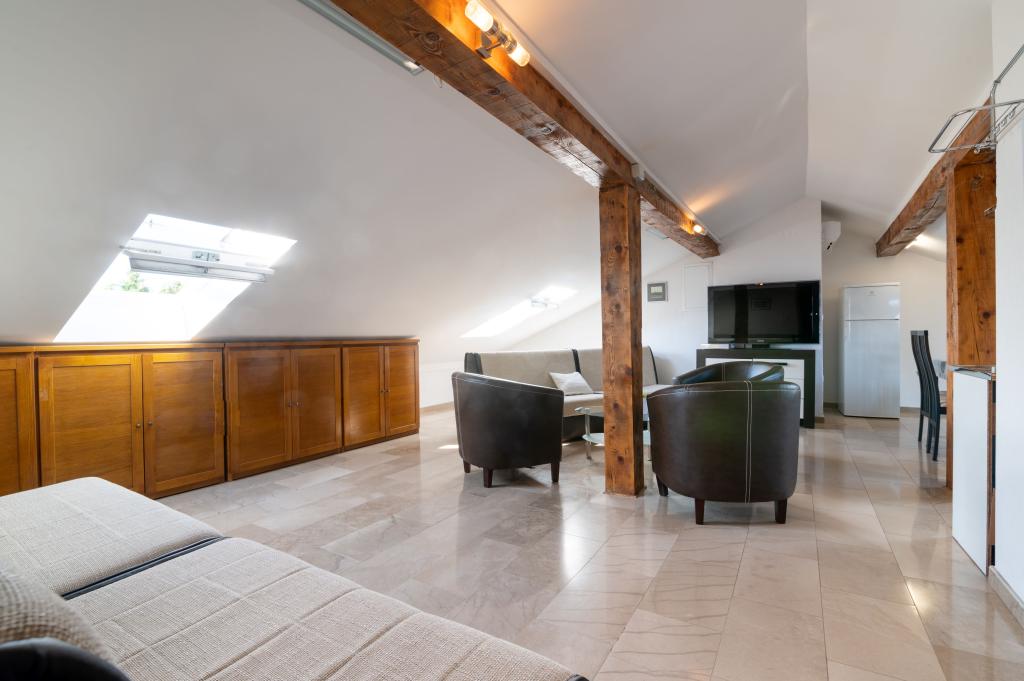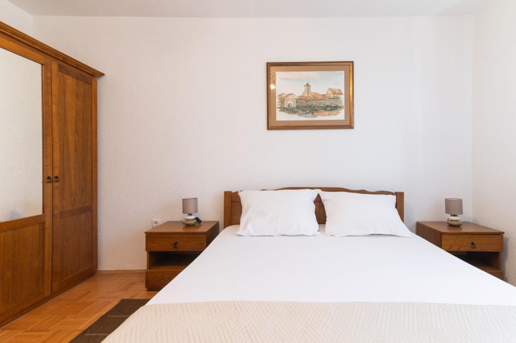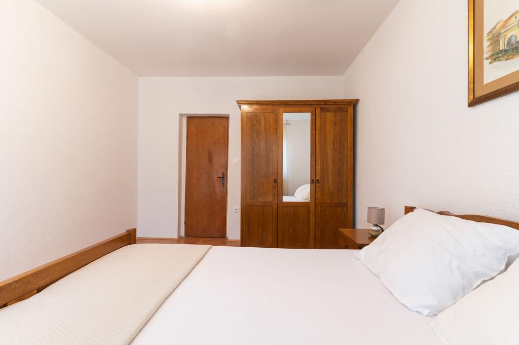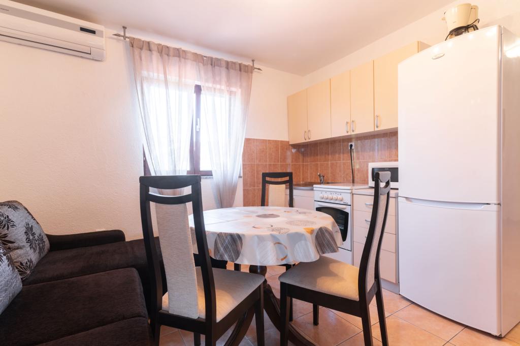 Dom położony jest w pierwszym rzędzie do morza, w pobliżu centrum Prek. Komfortowe, świeżo wyremontowane mieszkanie znajduje się na pierwszym piętrze domu i posiada 2 sypialnie, pokój dziecięcy, salon z kuchnią, łazienkę oraz taras. Pokoje mają dostęp do balkonu z widokiem na plażę i morze. Z salonu można wyjść na taras z widokiem na plażę i morze. W salonie znajduje się dodatkowe łóżko. Komfortowa kawalerka o powierzchni 60 m2 z 4 łóżkami, kuchnią, pokojem dziennym i łazienką znajduje się na poddaszu domu. Na parterze znajduje się wspólny duży taras, z którego mogą korzystać goście apartamentów typu studio. Mamy również duży grill i piec chlebowy na podwórku. Parking dla samochodów znajduje się na podwórku. Apartamenty wyposażone są w klimatyzację, telewizję satelitarną i łącze Wi-Fi.