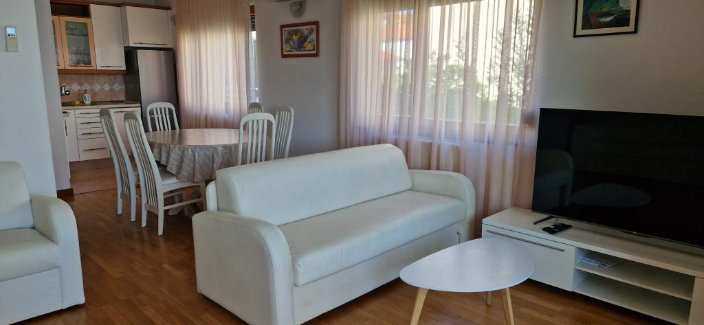 Willa EDEN znajduje się w jednej z NAJBARDZIEJ ATRAKCYJNYCH LOKALIZACJI w okolicy, tuż przy piaszczystej plaży Jaz w Preko na wyspie Ugljan. Apartamenty w willi EDEN są niezwykle komfortowe i oferują wyjątkowe widoki na morze, całą piaszczystą plażę, zieloną wysepkę Školjić w bezpośrednim sąsiedztwie oraz miasto Zadar. Plaża obok willi EDEN jest idealna dla rodzin z dziećmi, nawet tymi najmniejszymi. Willa EDEN posiada prywatny ogród z trawnikiem, altaną i grillem. W bezpośrednim sąsiedztwie, około 50 metrów, znajduje się kilka wysokiej jakości punktów gastronomicznych, w tym bar na plaży, pizzeria, restauracja i cukiernia, dzięki czemu goście mogą w pełni cieszyć się pobytem. Okolica i miasto Preko są bardzo zadbane, z zadbanymi promenadami, ścieżkami rowerowymi, zadbanymi plażami i licznymi udogodnieniami, które tworzą to miejsce o wysokiej jakości i bez tłumów. Bliskość Zadaru, oferta wycieczek i udogodnienia dla dzieci sprawiają, że letnie wakacje w naszym mieście i w willi EDEN będą niezapomniane. Jesteśmy pewni, że większość z Państwa powróci do nas na lata.