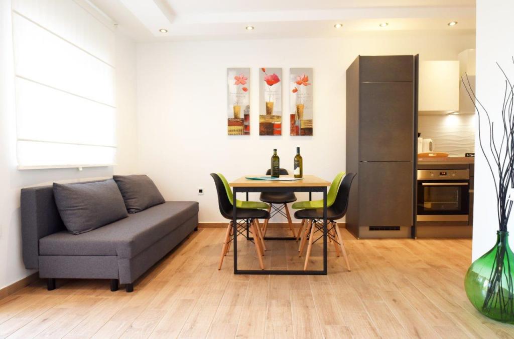 Przestronne i w pełni wyposażone apartamenty, z których część oferuje wspaniały widok na morze. Znajdują się w spokojnej okolicy, niedaleko centrum i 10 minut spacerem od plaży.