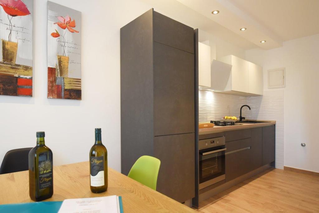 Pod koniec sierpnia ubiegłego roku, spędziliśmy tydzień w tym mieszkaniu z innymi znajomymi. Mieszkanie jest wyposażone we wszystko, ładne czyste, dobrze utrzymane, niczego nie brakuje. Ma też piękny taras, który wykorzystaliśmy wiele dla śniadania, obiady i różnych spritzem ciesząc się widokiem na morze. Znamy Flegar rodzinie od wielu lat i możemy powiedzieć z pewnością, że są one zawsze bez zarzutu w ich pracy. Wielki profesjonalizm, ciepło i gościnność, wydaje się być w rodzinie. Zawsze, gdy wracamy z własnej woli. Mario i Barbara