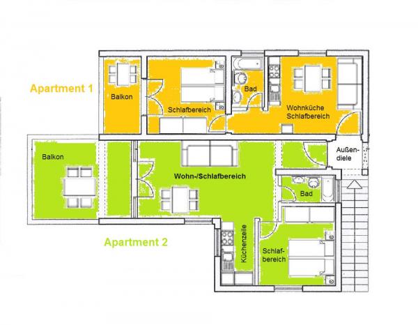 Apartament dla dwóch osób z dwoma dostawkami (41 m2)
