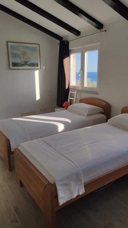 Gorąco polecamy Haus Grego: Mały, romantycznie urządzony dom z fantastycznym widokiem na morze (położony bezpośrednio przy romantycznym kościele) na tarasie i balkonie. Dom i taras są dobrze wyposażone we wszystko, czego potrzebujesz, otoczone drzewami oliwnymi i śródziemnomorską atmosferą. Woda jest rzadka i dlatego cenna na wyspie i powinieneś trochę zaoszczędzić! Mały minus to dość głośne buczenie, które często słychać w nocy (prawdopodobnie dochodzące z pomp/cystern), a materace mogłyby być trochę lepsze. Petar umeblował taras wspaniałym zestawem krzeseł i leżaków i jest dostępny przez cały pobyt lub odbierze Cię z promu! Wrócimy!