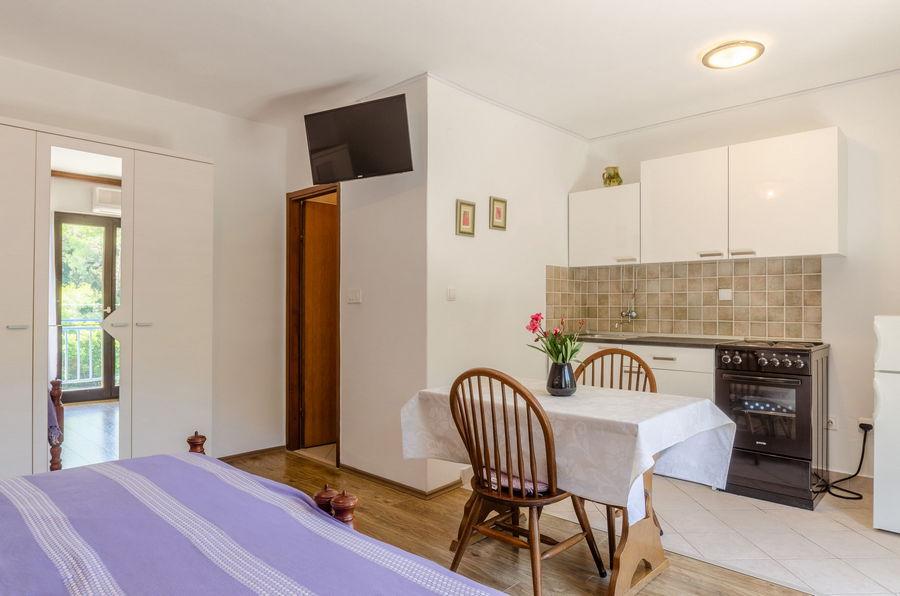 Apartamenty Kuzma znajdują się w małej malowniczej zatoce na wyspie Korcula, w pobliżu Blato. Dom położony w pięknym sosnowym lesie, nieco oddalony od głównej drogi, dzięki czemu goście mogą cieszyć się ciszą i spokojem. Sosnowy las sprzyja doskonałemu mikroklimatowi, co gwarantuje przyjemny pobyt w budynku i na tarasach budynku. Każdy apartament posiada klimatyzację. Obok budynku znajduje się duży taras z grillem i meblami, z którego goście mogą bezpłatnie korzystać w celach towarzyskich. Obiekt zapewnił bezpłatny parking dla swoich gości. Około 200 m od centrum zatoki, gdzie znajduje się sklep, dwie restauracje, mała kawiarenka, a także boisko do siatkówki plażowej i koszykówki. W pobliżu, w odległości 4 km jest większa miejscowość Blato gdzie znajdują się supermarkety, lekarz, bank, poczta. Obiekt przywita Cię gospodarzami, którzy będą do Twojej dyspozycji przez cały pobyt.