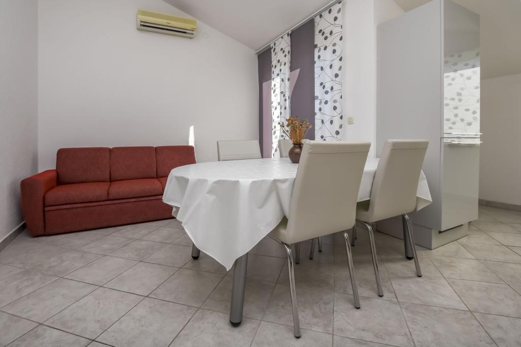 Apartament Zdravka położony jest w spokojnej części Primoštenu, zaledwie kilka minut spacerem od głównych plaż i centrum miasta. Znajduje się na 1. piętrze i składa się z 2 sypialni, łazienki oraz przestronnej kuchni z jadalnią. Apartament posiada balkon z częściowym widokiem na morze. Wyposażony jest w lodówkę z zamrażarką, piekarnik, zmywarkę, kuchenkę mikrofalową, telewizor SMART TV oraz bezprzewodowy internet. Bezpłatny parking na 1 samochód znajduje się tuż przed domem.
