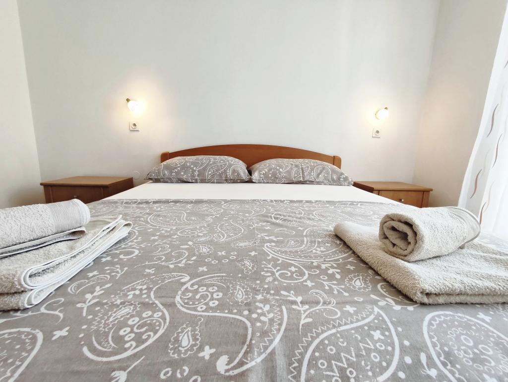 Apartament może nie najnowszy ale bardzo czysty i w bardzo dobrym stanie. Bardzo przestronny i dobrze wyposażony. Świetna lokalizacja, bardzo blisko plaży i centrum miasteczka. Bardzo życzliwi i chętni do pomocy gospodarze u których można kupić świetne domowe wino i rakiję.