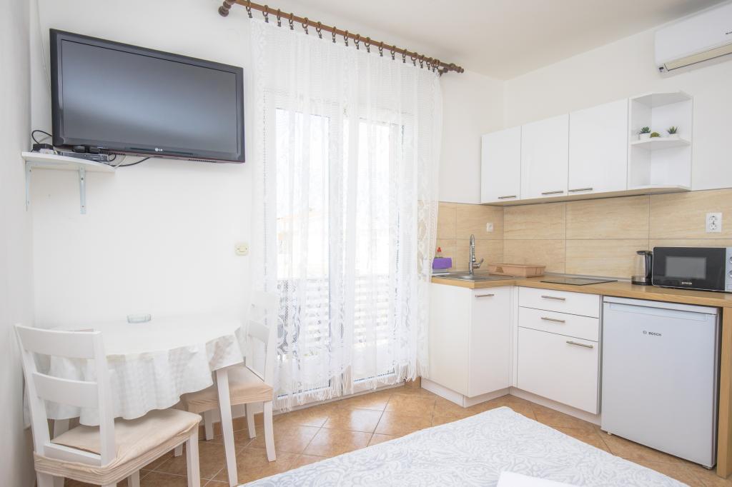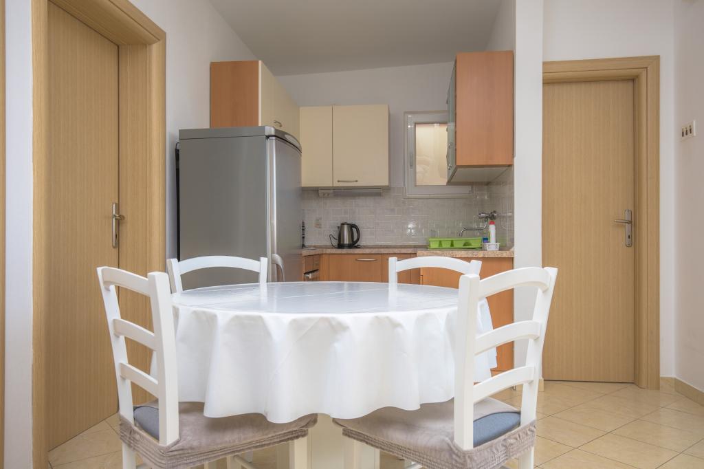 Mieszkaliśmy w apartamencie A4 przez 2 tygodnie (2 osoby dorosłe + 3 dzieci) i mogę go tylko polecić. Jest bardzo czysty, ma 2 wygodne sypialnie, w pełni wyposażoną kuchnię, salon z sofą i telewizorem oraz balkon, na którym można delektować się kawą i widokiem na morze. Obiekt położony jest w spokojnej okolicy, w odległości 2 stóp znajduje się plaża (z barem), a w zasięgu spaceru znajduje się wiele innych plaż. W odległości około 5 minut jazdy samochodem znajduje się kilka targowisk. Gospodarze są bardzo mili, zawsze pomocni i produkują oliwę z oliwek najwyższej jakości