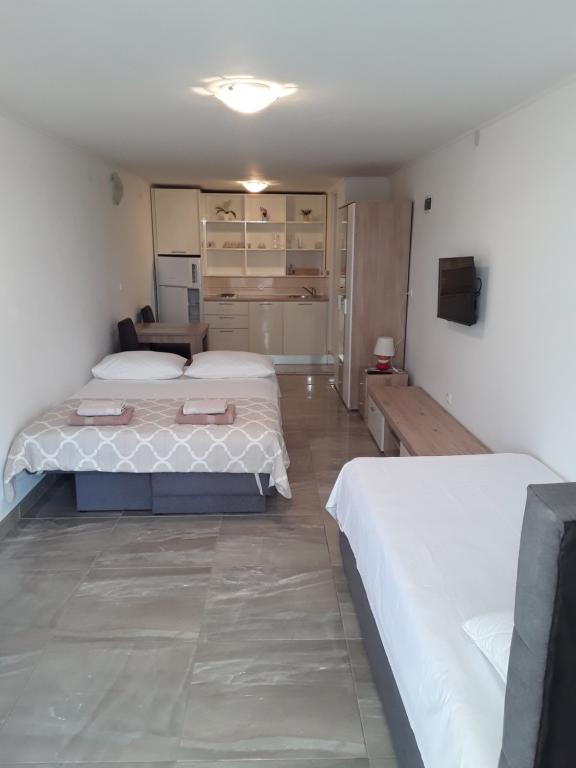 W pełni wyposażone apartamenty w spokojnej okolicy w drugim rzędzie do morza, zaledwie 100 metrów od plaży. Apartamenty mają wszystko, aby cieszyć się wakacjami i czuć się jak w domu, parking znajduje się przed domem. Apartamenty znajdują się 28 km od Sibenika i 35 km od Parku Narodowego i 30 km od lotniska Split (Resnik).
