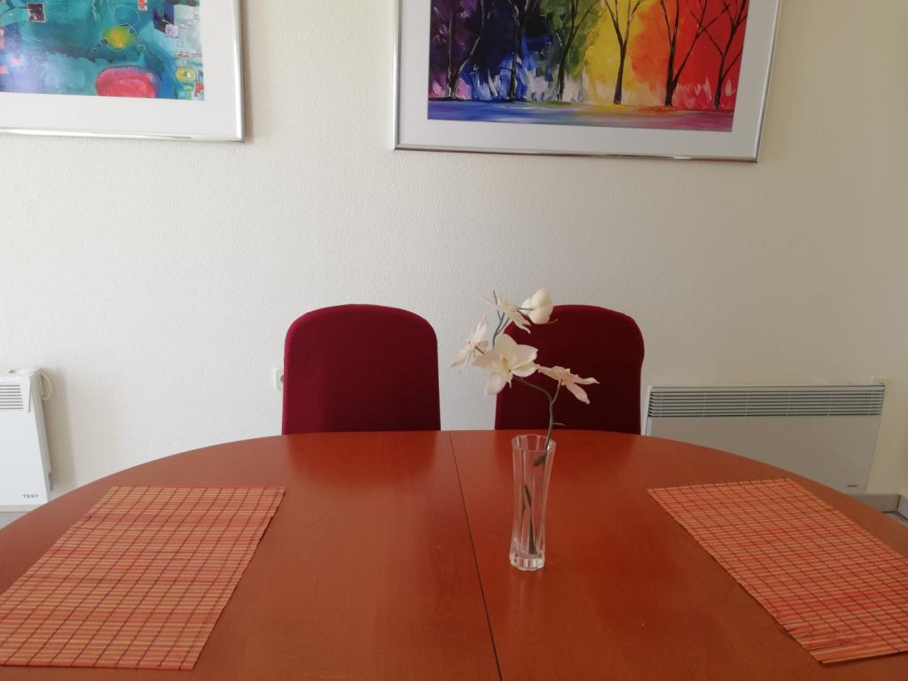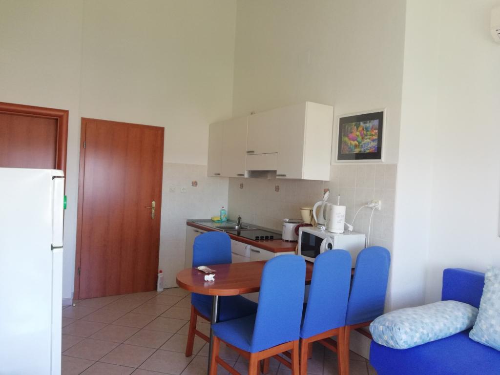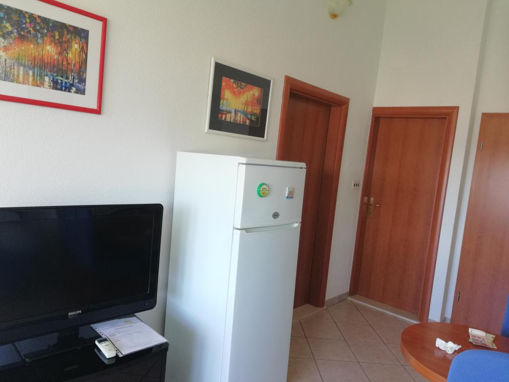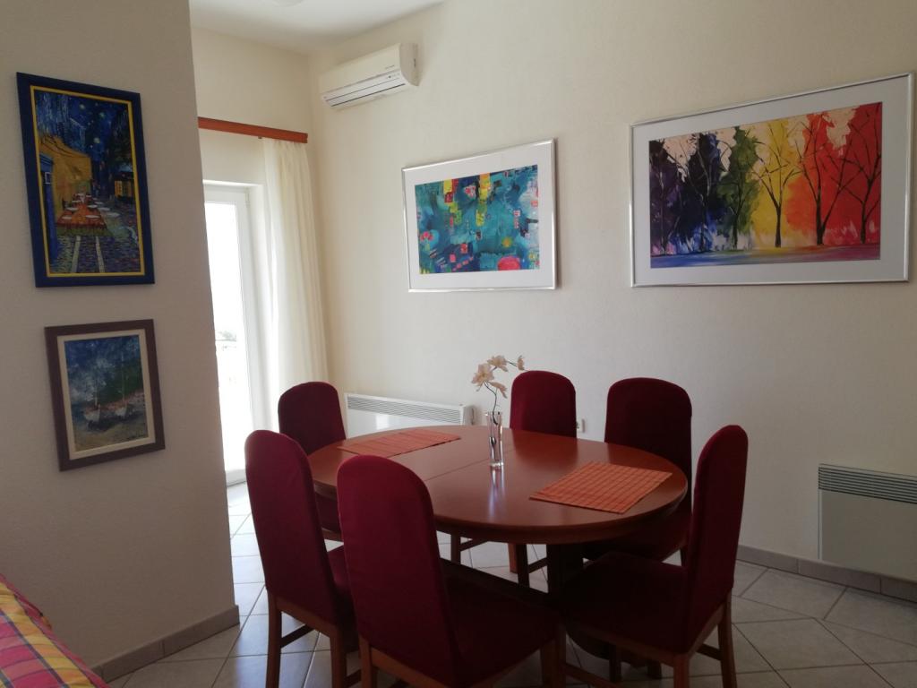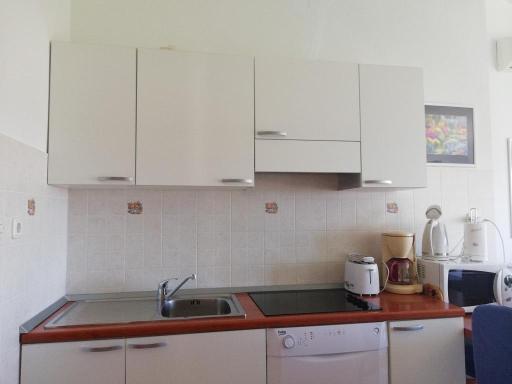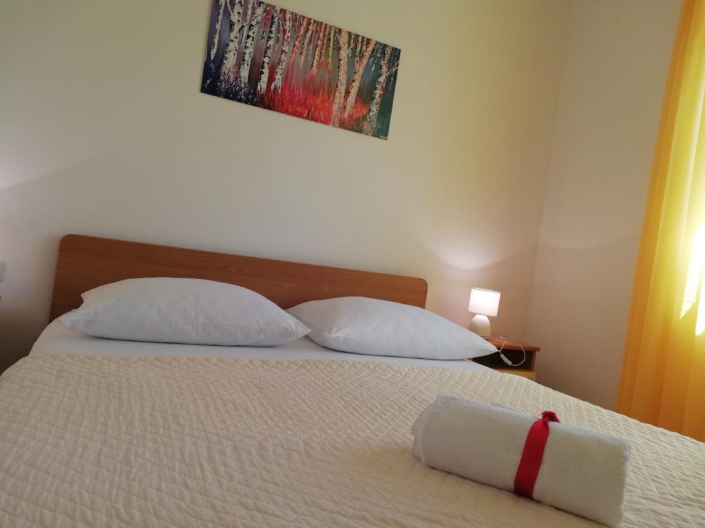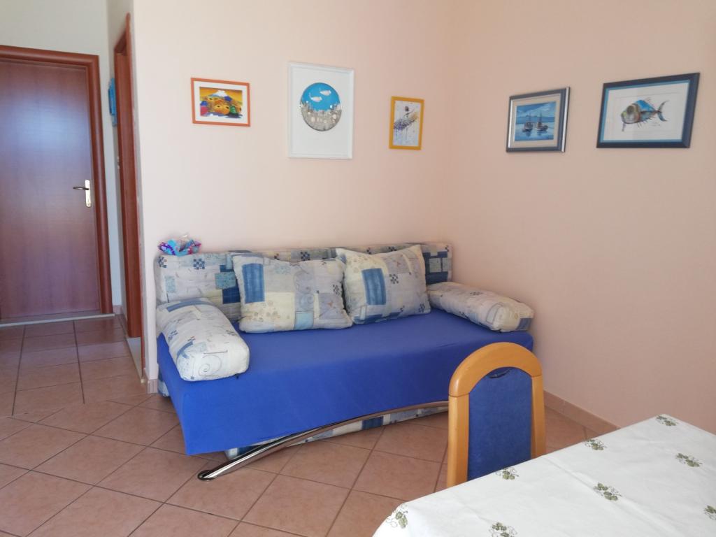 Wygodne i ładnie urządzone mieszkanie, położone na niewielkim wzniesieniu nad drogą u szczeniaka Primo. Z apartamentu i tarasu roztacza się piękny widok na morze i Stare Miasto. To tylko 8 minut spacerem od plaży, również od centrum miasta. Mieszkanie składa się z sypialni dla dwóch osób, kuchni z salonem, łazienki i tarasu. W salonie znajduje się rozkładana sofa dla dwóch osób. Odpowiedni dla małżeństwa z małymi dziećmi. Mieszkanie znajduje się na 1. piętrze.