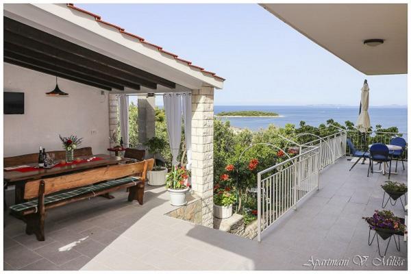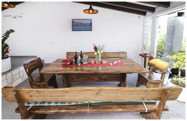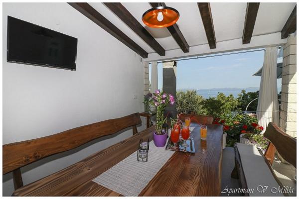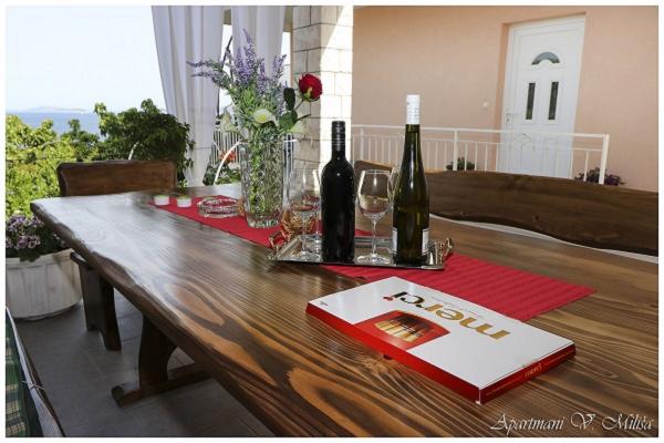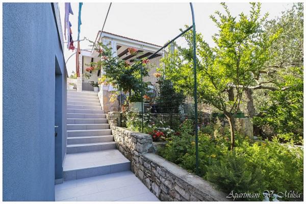 Witamy w apartamentach Miliša-Vesna i ciesz się spokojem i pięknem naszego pięknego Primostenu! Apartamenty Miliša znajdują się w spokojnej części Primosten. 100 metrów od kamienistej i kamienistej plaży i 600 metrów od centrum, do którego można dojść w 8 minut. Nasze apartamenty mogą pomieścić od 2 do 16 osób. Każdy apartament wyposażony jest w telewizję satelitarną, klimatyzację i wifi. Każdy apartament posiada parking na podwórku. Masz grilla w ogrodzie z dużym wspólnym tarasem. Apartamenty Miliša zapewniają piękny widok z każdego tarasu naszego mieszkania i dają możliwość podziwiania zachodu słońca Primosten, który jest najpiękniejszym i najbardziej romantycznym zachodem słońca.