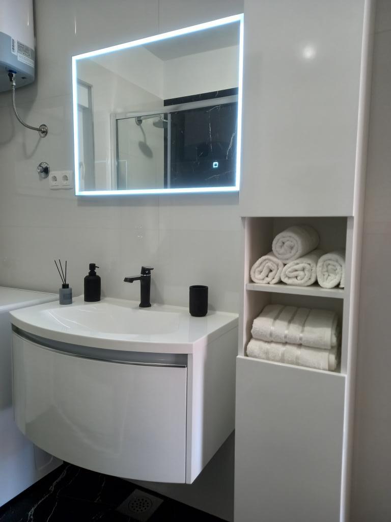 Pobyt w apartamencie udany. Właścielka bardzo sympatyczna przywitała nas rakiją a w późniejszych dniach częstowała sowimi wypiekami. W pokojach czysto, kuchnia bardzo dobrze wyposażona, deska do prasowania, żelasko suszarka do włosów. W pokoju 6+1 dwie łazienki z prysznicem i toaletą na duży plus. Przy 6 osobach nie było problemu. Widoku z balkonu nie da się opisać poprostu piękny. Tylko drobna uwaga co do podjazdu jest dość stromy. Bus 9 osobowy wyjechał, ale chwila obawy była. Po kilku zjazdach i wyjazdach wyjazd nie taki straszny. Polecam