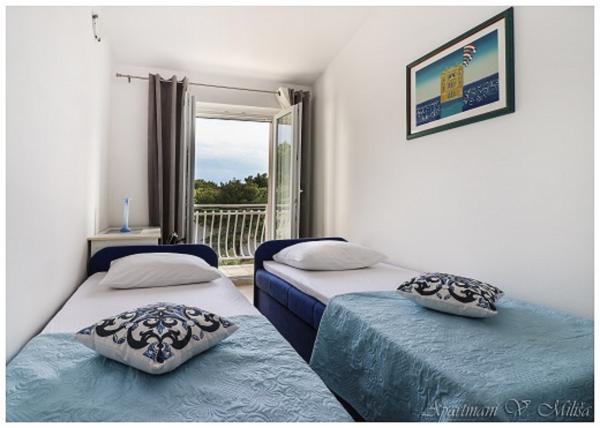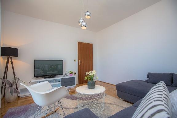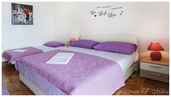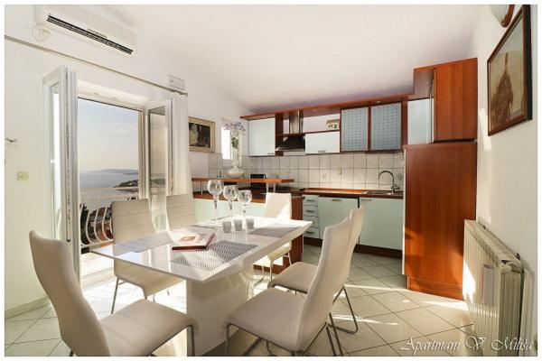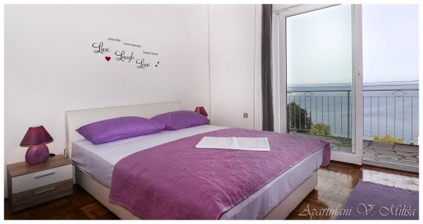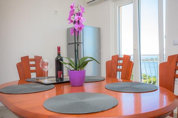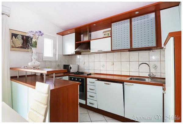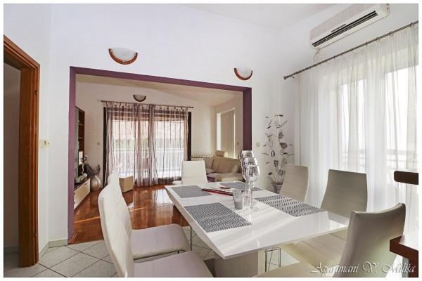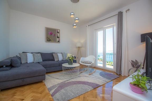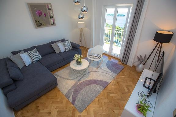 Bardzo miłe powitanie, przez komunikatywną i bardzo pomocną właścicielkę zwłaszcza kiedy przyjeżdża 4 osoby dorosłe i dwoje dzieci. Wspaniały apartament położony w miarę wysoko, ale dzięki temu z cudownym widokiem na Adriatyk i zachody słońca. Bliziutko do plaży, a plażą ok. 5 minut do centrum miasta. Apartament bardzo dobrze wyposażony, duże, czyste i ładne pokoje z balkonami dookoła apartamentu (z każdego miejsca widoczne lazurowe morze). Funkcjonalne i czyste obydwie łazienki. Swoboda w każdym calu - można się poczuć \"jak u siebie w domu\" i naprawdę wypocząć. Podany opis i zaprezentowane zdjęcia przedstawiają stan faktyczny - bez photoshop`a. Szczerze polecam - zwłaszcza, że to nie to nie był mój pierwszy pobyt w Chorwacji, ani w tym mieście.