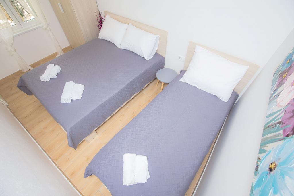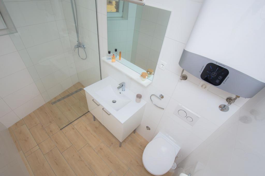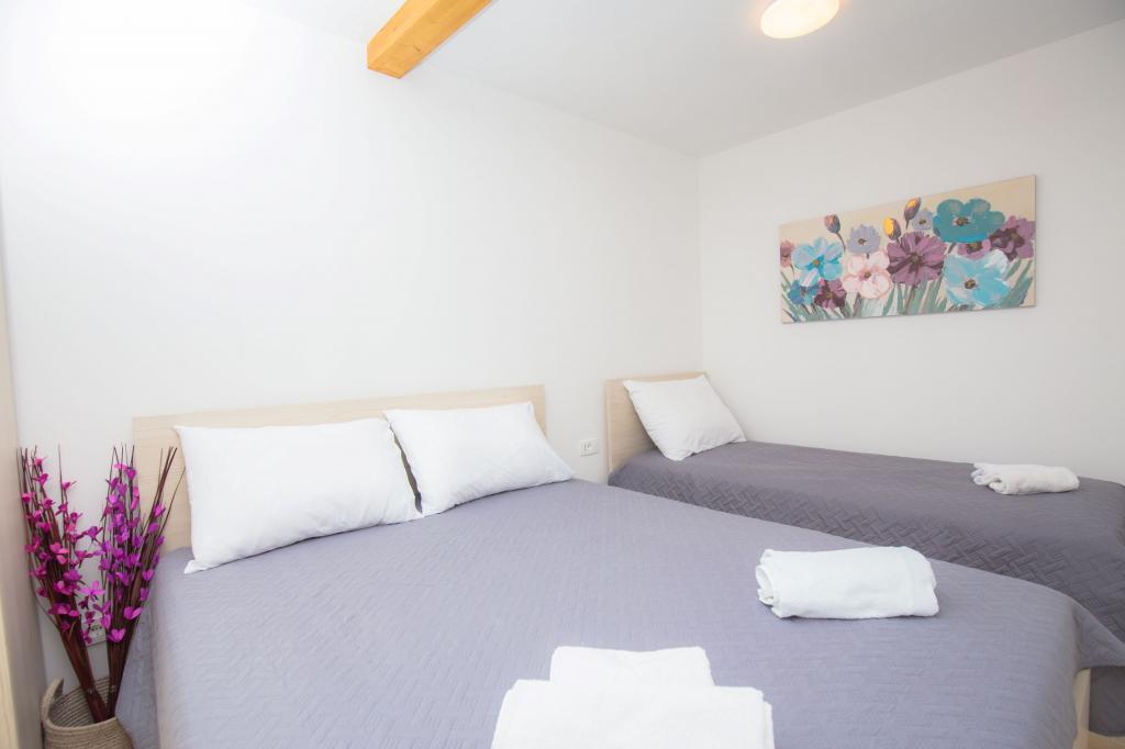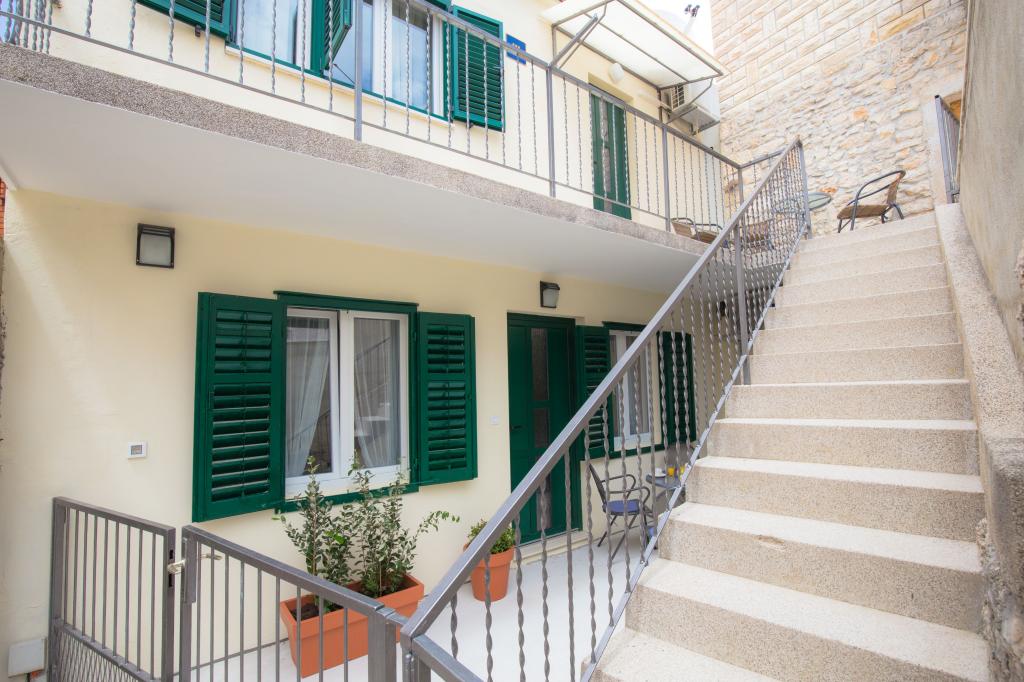 Nowo wyremontowane apartamenty w starej części Primosten, ścisłe centrum, otoczone restauracjami, sklepami z pamiątkami i sklepami. Apartamenty (ok. 55 m2) posiadają 2 sypialnie, kuchnię, łazienkę z prysznicem i balkon. Ma klimatyzację, telewizję satelitarną, pralkę. Parking znajduje się poza starą częścią, około 300 metrów od apartamentu.