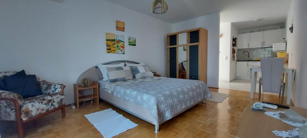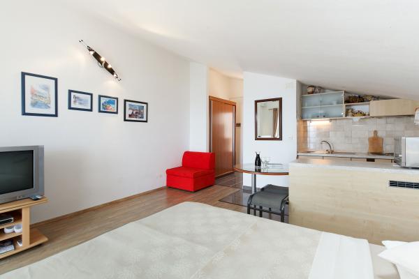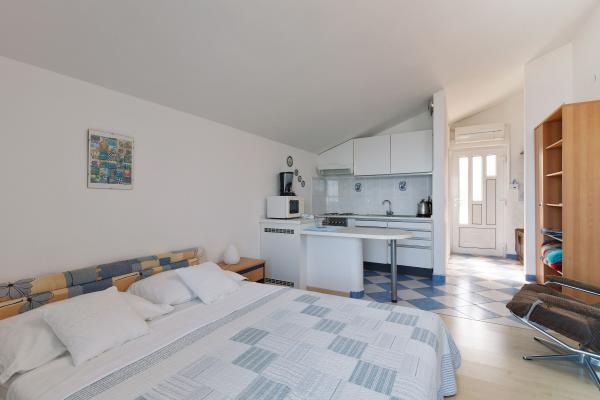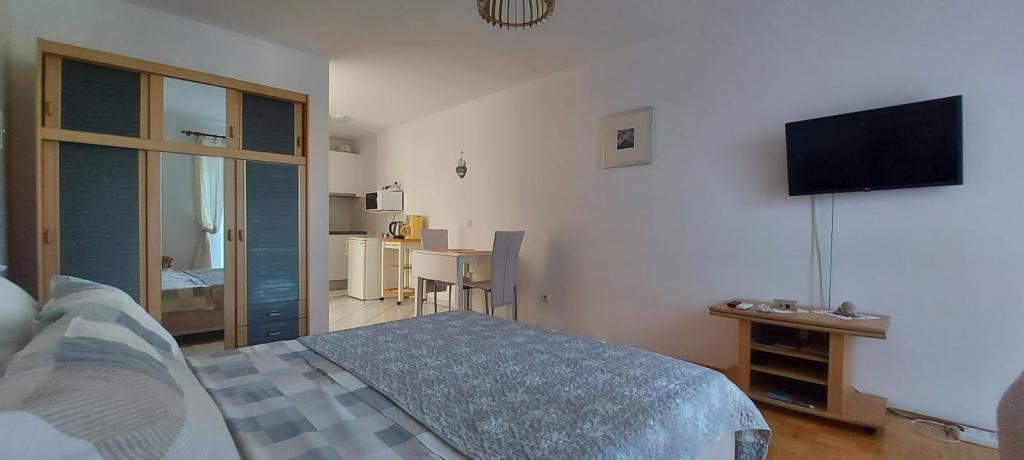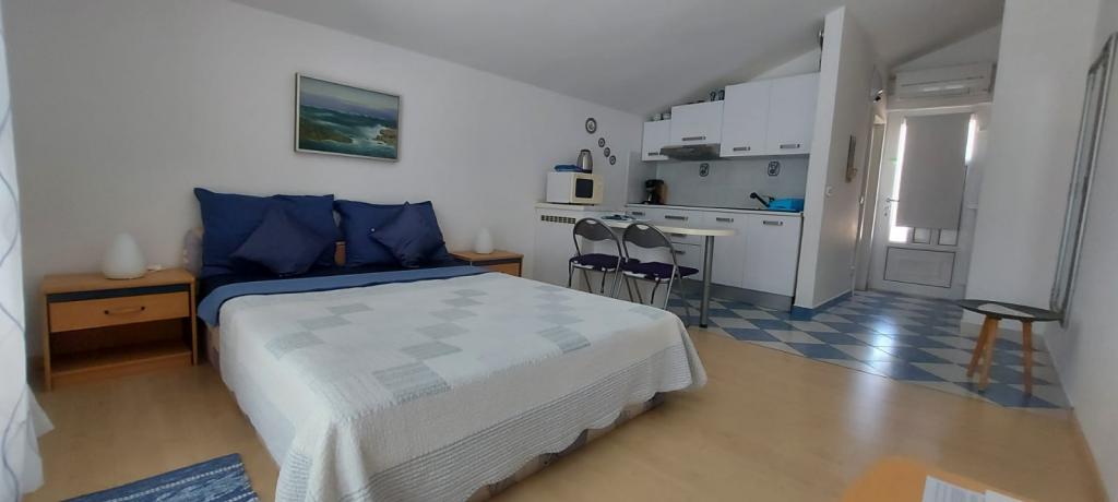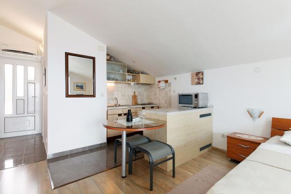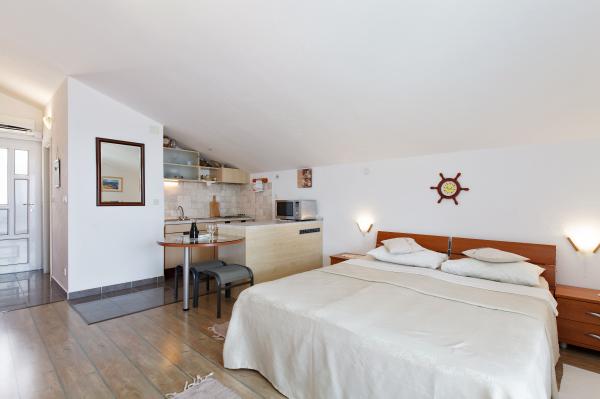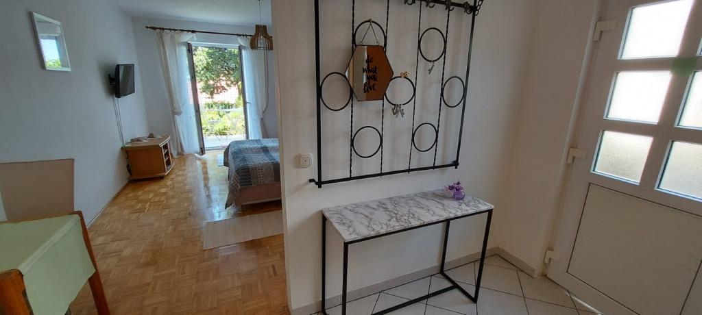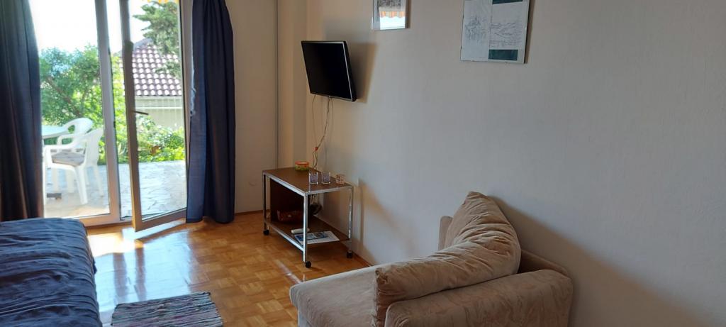 Pięknie, dobre położenie i dojście do plaży, wystarczająco duży pokój, przyjemny taras, super przemiła właścicielka, Marija - dziękujemy za wspaniałe wakacje (ciasta i lody).
