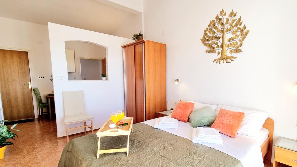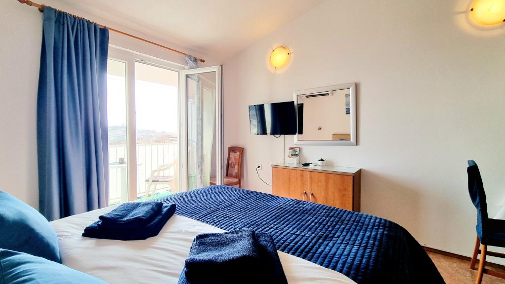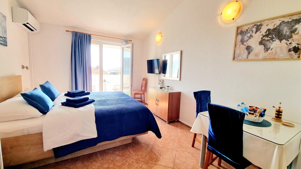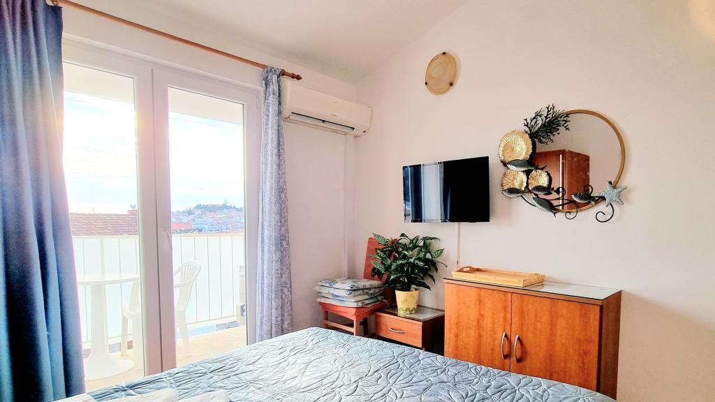 Doskonałe zakwaterowanie z doskonałym widokiem na stare miasto i morze. Jest czysty, spokojny, dobrze wyposażony w wygodne łóżko i posiada balkon, z którego roztacza się wspaniały widok. Klimatyzacja sprawia, że pobyt staje się jeszcze przyjemniejszy. Gospodarze są mili i pomocni, dostępny jest parking, a lokalizacja jest idealna, blisko zarówno plaży, jak i starego miasta. Wysoce polecany!