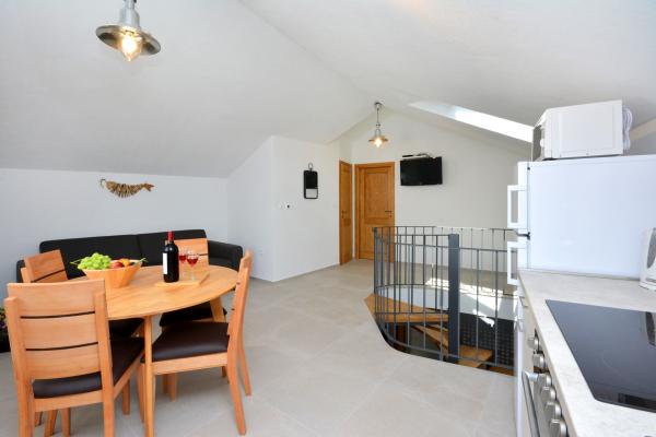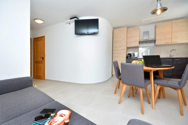 Nowocześnie urządzony apartament w samym sercu starego miasta Primošten. Zapomnij o prowadzeniu samochodu, wszystko czego potrzebujesz do przyjemnego wypoczynku znajduje się w odległości 200 m. Piękne, krystalicznie czyste plaże znajdują się 50 metrów od apartamentu, a w bezpośrednim sąsiedztwie (10 metrów) znajdują się liczne sklepy i restauracje, kawiarnie i inne obiekty użyteczności publicznej. W cenę pobytu wliczone jest miejsce parkingowe, a transfer do apartamentu w centrum odbywa się elektrycznym papamobilem. Dwa apartamenty można połączyć w jeden duży, dwupiętrowy apartament, co zapewni komfortowe zakwaterowanie dla maks. 6 (sześć) osób.
