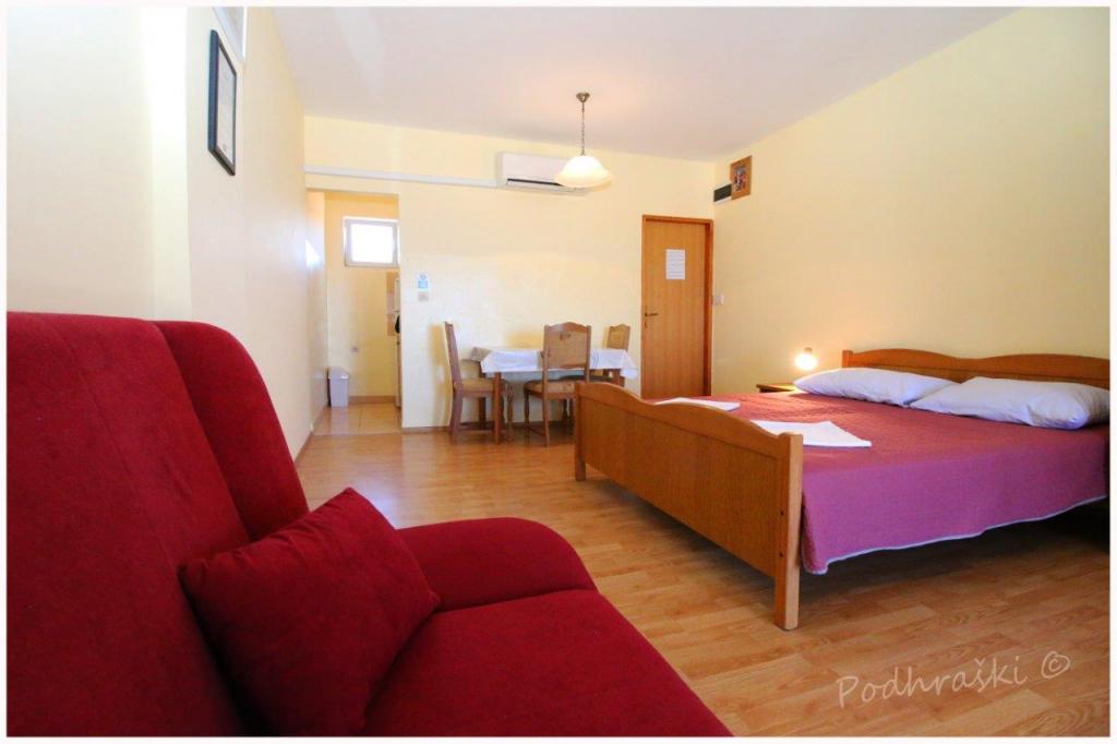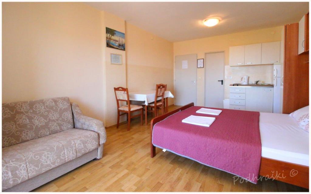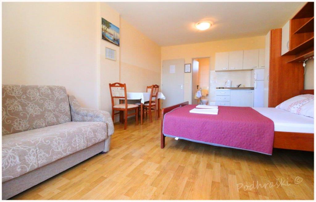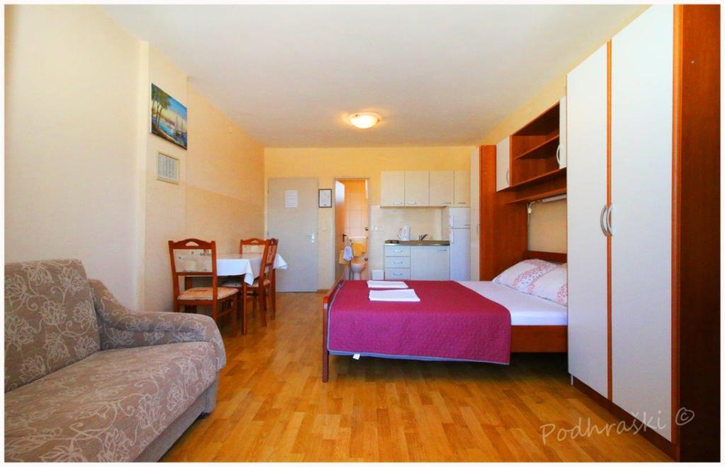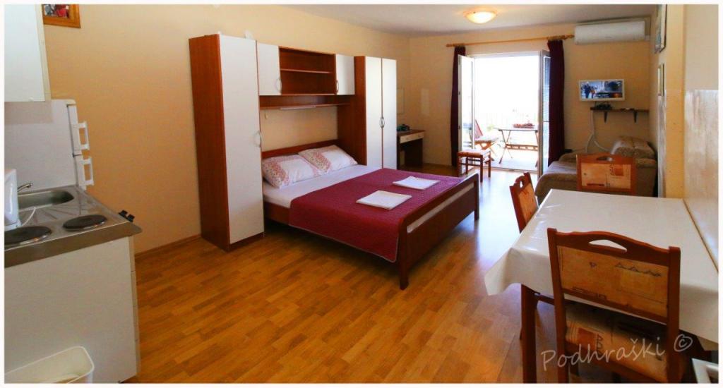 Czytaj więcej KwaterWynająć 4 apartamenty typu studio w Primosten w spokojnym miejscu, 4min pieszo od Rynku Głównego, 2-3min spacerem od plaży. Plaże są piaszczyste lasy sosnowe. Pojemność 2 osoby dorosłe i 2 dzieci na mieszkanie Apartamenty są nowe, z nowymi meblami i znajdują się w nowym domu. Cena obejmuje Wiata parkingowa, korzystanie z podwórza, klimatyzatory i grill, a także podatków lokalnych. Każdy apartament ma internetu (WiFi), lodówka, telewizor LCD, klimatyzację, podwójne łóżko, sofa, łazienka, kuchnia, balkon, etc ...