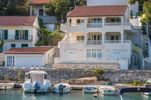 Ekskluzywna willa Emma, nowy kamienny dom, bezpośrednio nad morzem. Położony w Primošten, w spokojnej zatoce Porat. Zaledwie kilka minut spacerem prowadzi na żwirowe plaże i centrum. Wszystkie luksusowe apartamenty posiadają duży zadaszony taras z pięknym widokiem na morze. W domu znajduje się 5 apartamentów: Apartamenty numer 1, 2, 3 mają 2 sypialnie, pokój dzienny z łóżkiem piętrowym, 1 łazienkę. Apartamenty numer 4 mają 1 pokój, pokój dzienny z łóżkiem piętrowym, 1 łazienka. Apartamenty numer 5 mają 3 pokoje, pokój dzienny z łóżkiem piętrowym, 2 łazienki. Każdy apartament ma własne wejście i parking. Klimatyzacja w każdym pokoju i pokoju dziennym. Nowoczesny sprzęt, w pełni wyposażona kuchnia, łazienka, telewizja satelitarna / TV. Idealny czas przyjazdu 14:00 i wyjazdu 10:00.