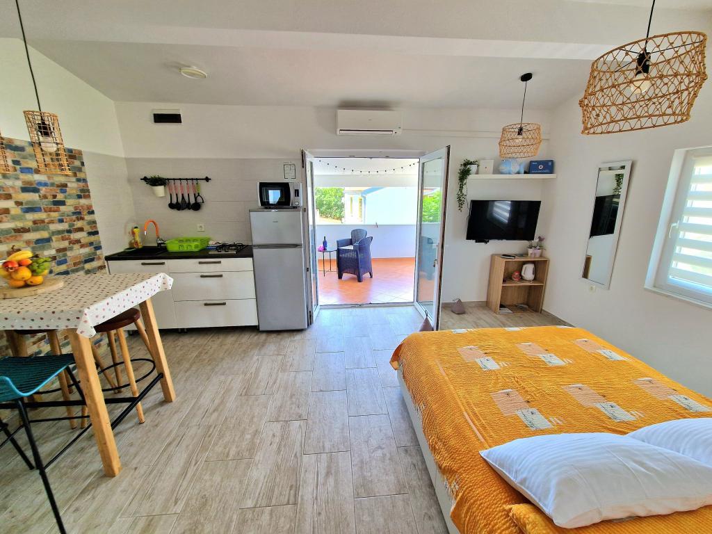 Mieszkanie znajduje się pod adresem Bilotinjaka II, numer domu 18, w Privlaka (Škrapavac). Znajduje się w pobliżu miasta Zadar, oddalonego o 15 km i ośrodka turystycznego Zaton, który jest oddalony o 1 km. Odległość do plaży wynosi około 200 metrów, a plaża jest odpowiednia dla małych dzieci i osób nie umiejących pływać, ponieważ morze jest płytkie i piaszczyste. Zakwaterowanie jest przewidziane dla 4 osób, idealne dla rodziców i dwójki dzieci. Mieszkanie znajduje się w rodzinnym domu na pierwszym piętrze. Powierzchnia mieszkania to 36 m2 + 15 m2 zadaszony taras i składa się z: - sypialni - salonu - z podwójnym łóżkiem - kuchni - łazienki - klimatyzacji - grilla (na podwórku) - prysznica słonecznego (na podwórku) - miejsca parkingowego