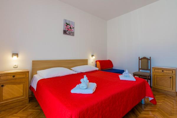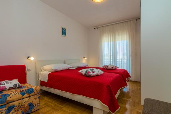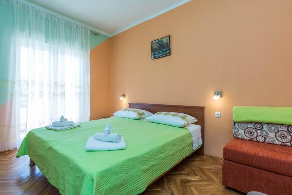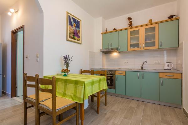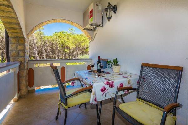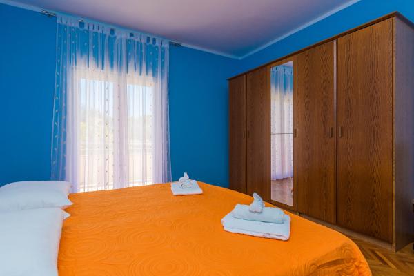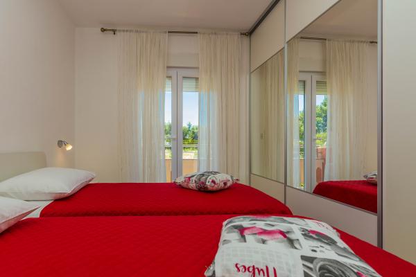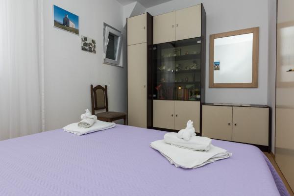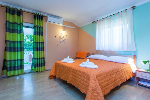 W pełni wyposażone apartamenty w cichej okolicy Privlaka, położone 300 m od morza, z dużym podwórkiem. Apartamenty posiadają dwie duże sypialnie, łazienkę, kuchnię, duży taras i balkon. Przed domem las sosnowy, niedaleko dworca autobusowego.