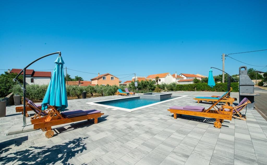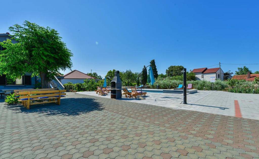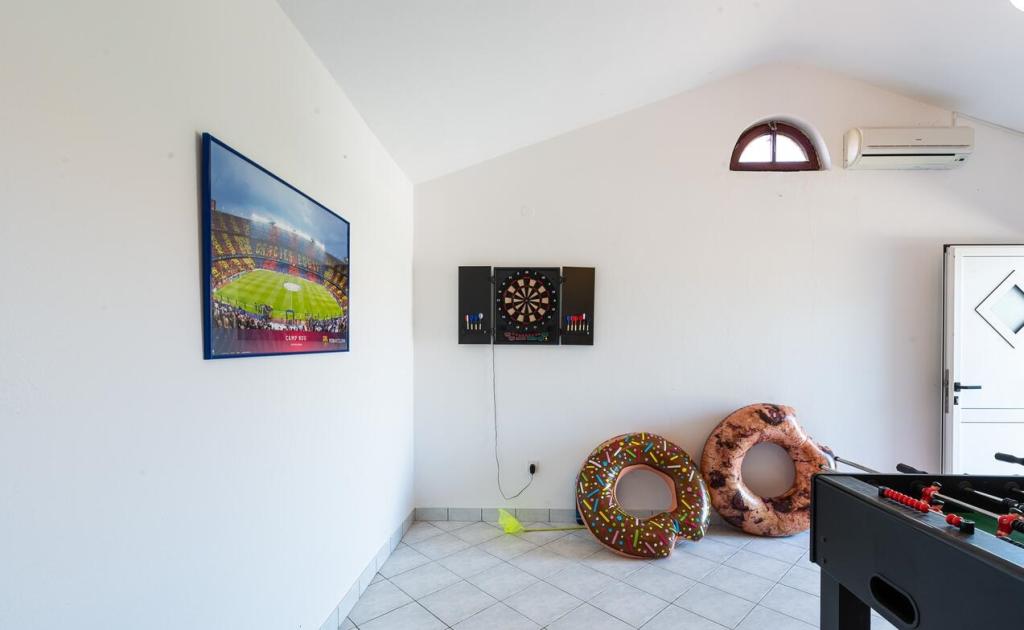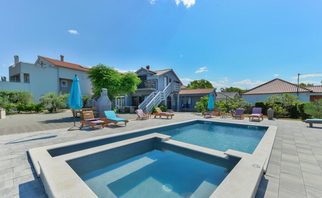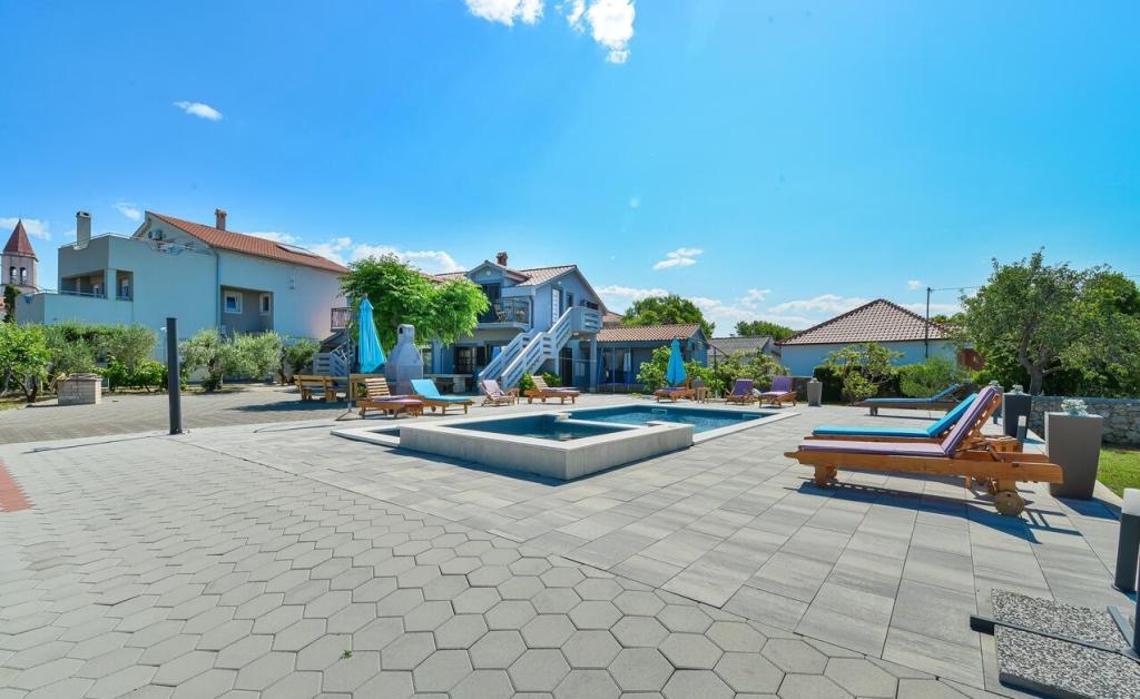 Apartamenty znajdują się 300 m od morza. Znajdują się w zacisznym miejscu, w otoczeniu drzew oliwnych, basen, jacuzzi, grill, pokój gier z rzutkami i piłkarzykami. Duży ogród, ogrodzony...