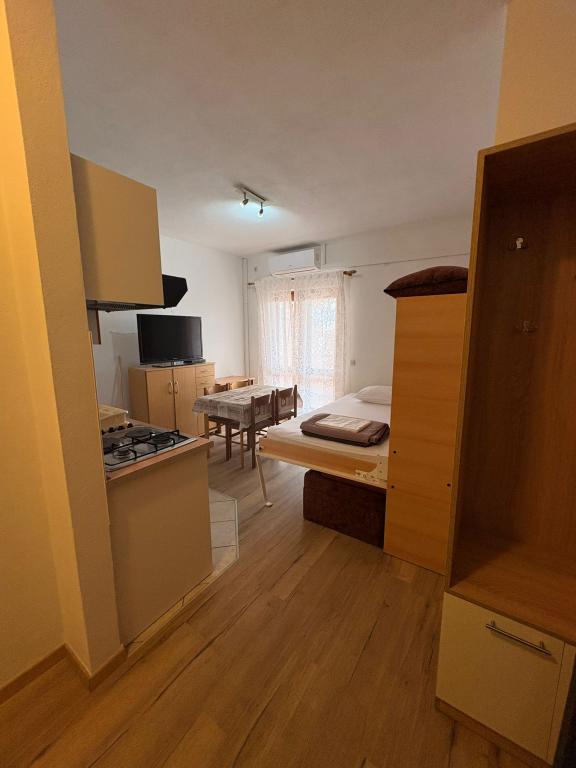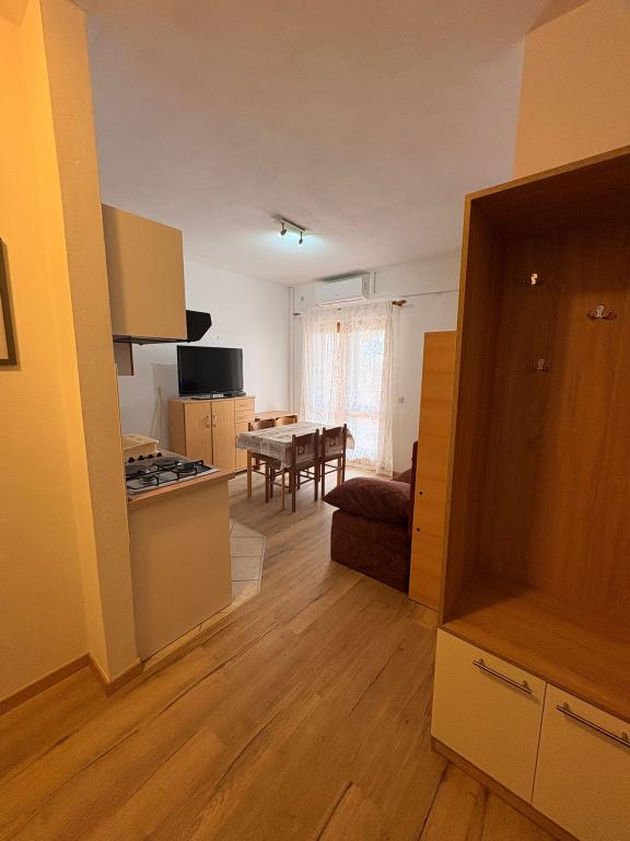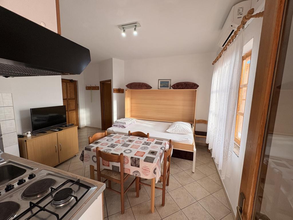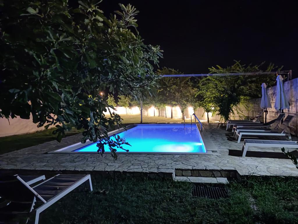 Na naszym podwórku zorganizowaliśmy i zarezerwowaliśmy jedno utwardzone, kryte miejsce parkingowe dla każdego apartamentu. Dysponujemy również miejscami parkingowymi dla kilku samochodów na apartament. W budynku pomocniczym Goście mają dostęp do tawerny, w której można nawiązać kontakty towarzyskie i przygotować posiłki z niezbędnym sprzętem gastronomicznym. Basen jest przelewowy z dwóch stron i wyposażony w dwa rodzaje masaży wodnych. Jest on dostępny dla Gości w godzinach 8:00-22:00. Leżaki i parasole są wliczone w cenę apartamentu. Stały baldachim o długości 12 m zapewnia bezpieczną ochronę przed słońcem. Dwa urządzenia do ćwiczeń są dostępne dla Gości w godzinach 8:00-22:00 i są wliczone w cenę apartamentu. Pralka znajduje się w budynku pomocniczym i jest dostępna dla Gości w godzinach 8:00-22:00 i jest wliczona w cenę apartamentu. Gospodarze są zawsze dostępni i chętnie pomagają w przygotowywaniu potraw z grilla.