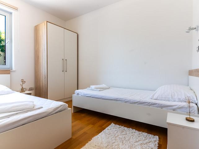 Obiekt My Nest Accomodation położony jest w spokojnej części miejscowości Privlaka (Glavanci), 600 m od najbliższej plaży i 800 m od plaży Bilotinjak, jednej z najpiękniejszych piaszczystych plaż w tej części Dalmacji. Oferujemy prywatny parking przed każdym apartamentem oraz wyjątkowy wspólny dziedziniec ze wspólną kuchnią i grillem, tarasem, basenem o powierzchni 100 m², tarasem słonecznym przy basenie, jacuzzi i sauną, w której rozpościerają się zapachy śródziemnomorskiego ogrodu. Każdy apartament posiada salon, w pełni wyposażoną kuchnię, dwie sypialnie i łazienkę oraz taras lub balkon. Znajdujemy się zaledwie 12 km od Zadaru, a zabytkowe miasto Nin oddalone jest o zaledwie 3 km. Jesteśmy w idealnym miejscu, jeśli chcesz odwiedzić Wyspy Kornati, Park Narodowy Krka, Park Narodowy Jezior Plitwickich, Pag, Ugljan i wiele innych atrakcji, a jednocześnie cieszyć się spokojem autentycznego dalmatyńskiego miasteczka.
