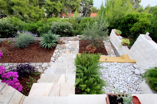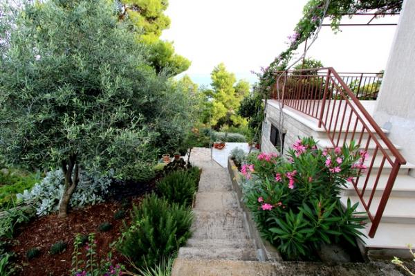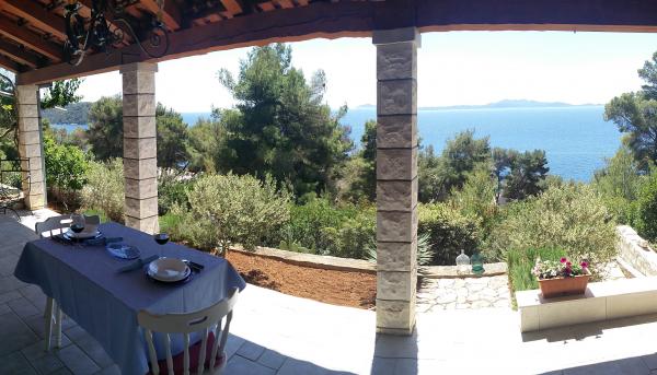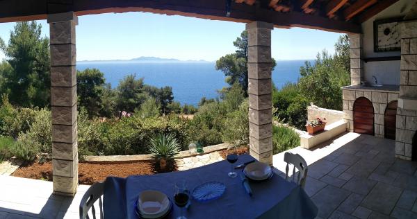 Apartamenty Ana znajdują się w miejscowości Prižba, w miejscowości Vinačac, w sosnowym lesie, w bardzo spokojnej okolicy. Z apartamentów roztacza się wspaniały widok na otwarte morze i wyspy. Otoczenie domu jest pięknie urządzone. Do domu prowadzą betonowe schody. Dom składa się z dwóch nowych apartamentów, idealnych na relaksujący wypoczynek na łonie natury. Plaża znajduje się poniżej domu.